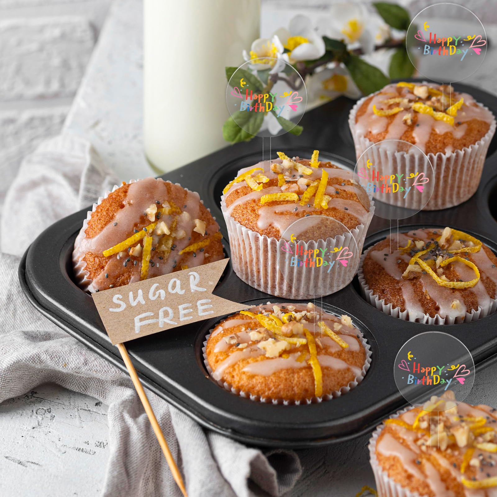- Tip: both sides of the cupcake toppers are covered with protective film, you just need to peel them off before use, and the topper will be clear and transparent