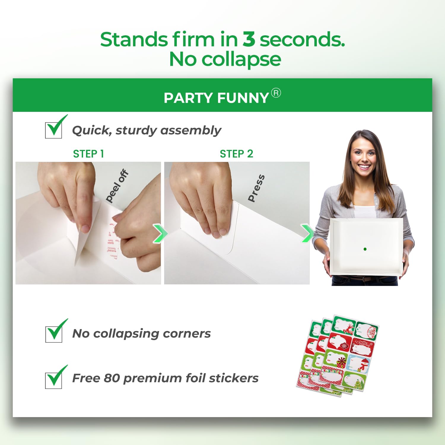 - Be Made of heavy duty white cardboard, double-sided tape on the corner flaps are included, which make the boxes pop up easily, save your valued time when packing your presents.