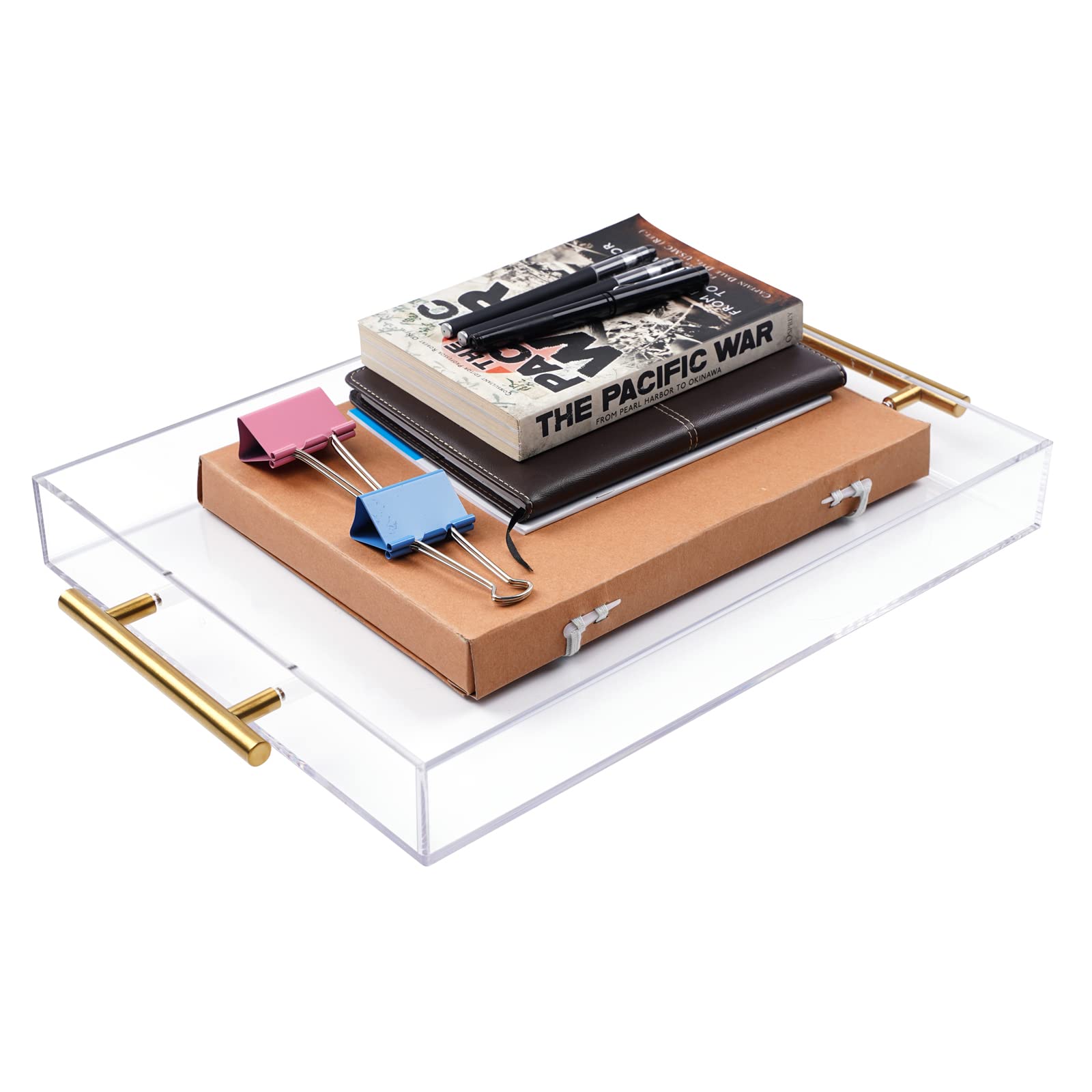 - Multi-function Usage: This clear tray size is 12x16x2 inches. We have small, medium, large different capacity can meet all your needs. Suitable for your home, bars, workplace use. Perfect for makeup table tray, nightstand tray, coffee, and tea snack serving tray, even use for bathroom decoration tray. Keep your home organized.