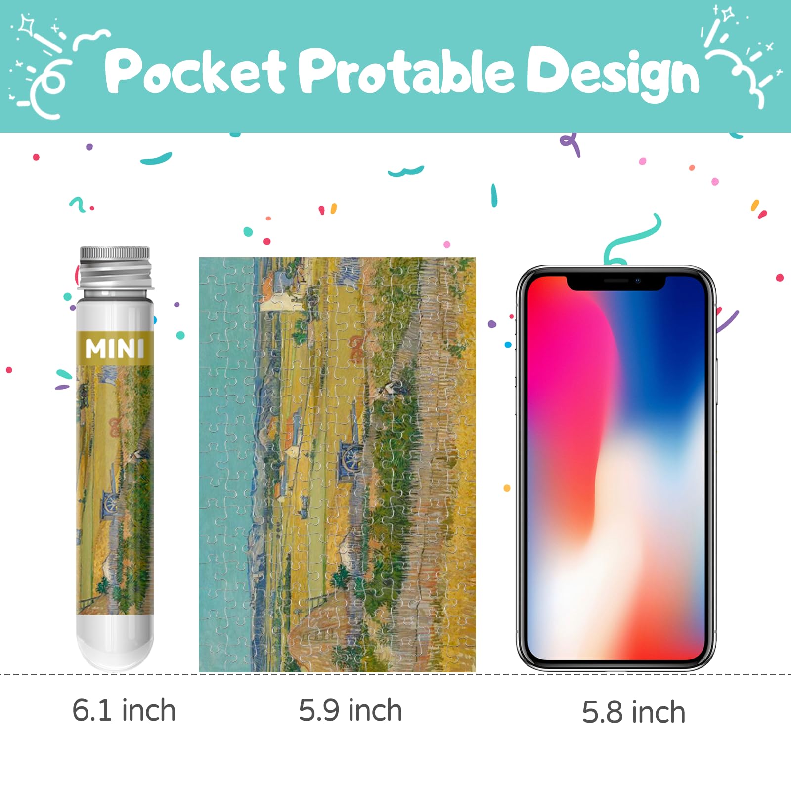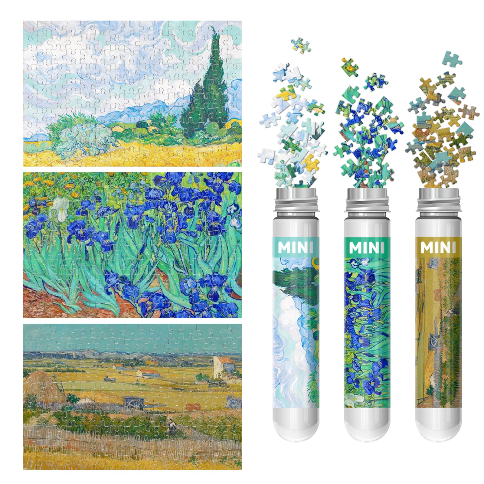150 Pieces Mini Jigsaw Puzzles for Adults & Kids, 6" x 4" Small Jigsaw Puzzles Capsule Tube Jigsaw Puzzles Intelligent Game, Wheat Field with Cypresses Irises The Harvest (Wheatfields) 3 Pack