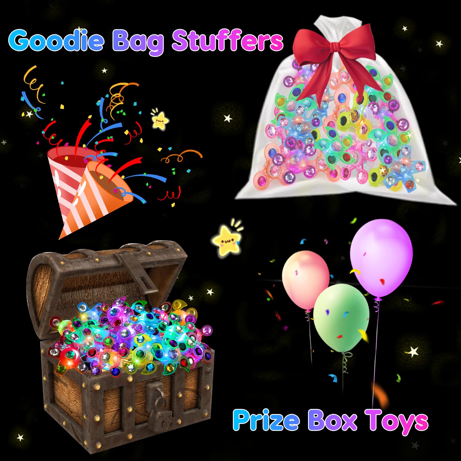 - [Perfect Classroom Prizes for Students] Our fidget toys bulk are not only fun, but also relaxing. They are great as classroom prizes for students. Spinning and lighting can break away from troubles, relieve anxiety, release pressure and free yourself from your problems. Our toys are are super portable, you can carry around and have fun at any time. Best treasure prize box toys for kids classroom, treasure chest for kids prizes, small bulk toys for kids prizes, back to school party favors for kids, back to school goodie bag stuffers.