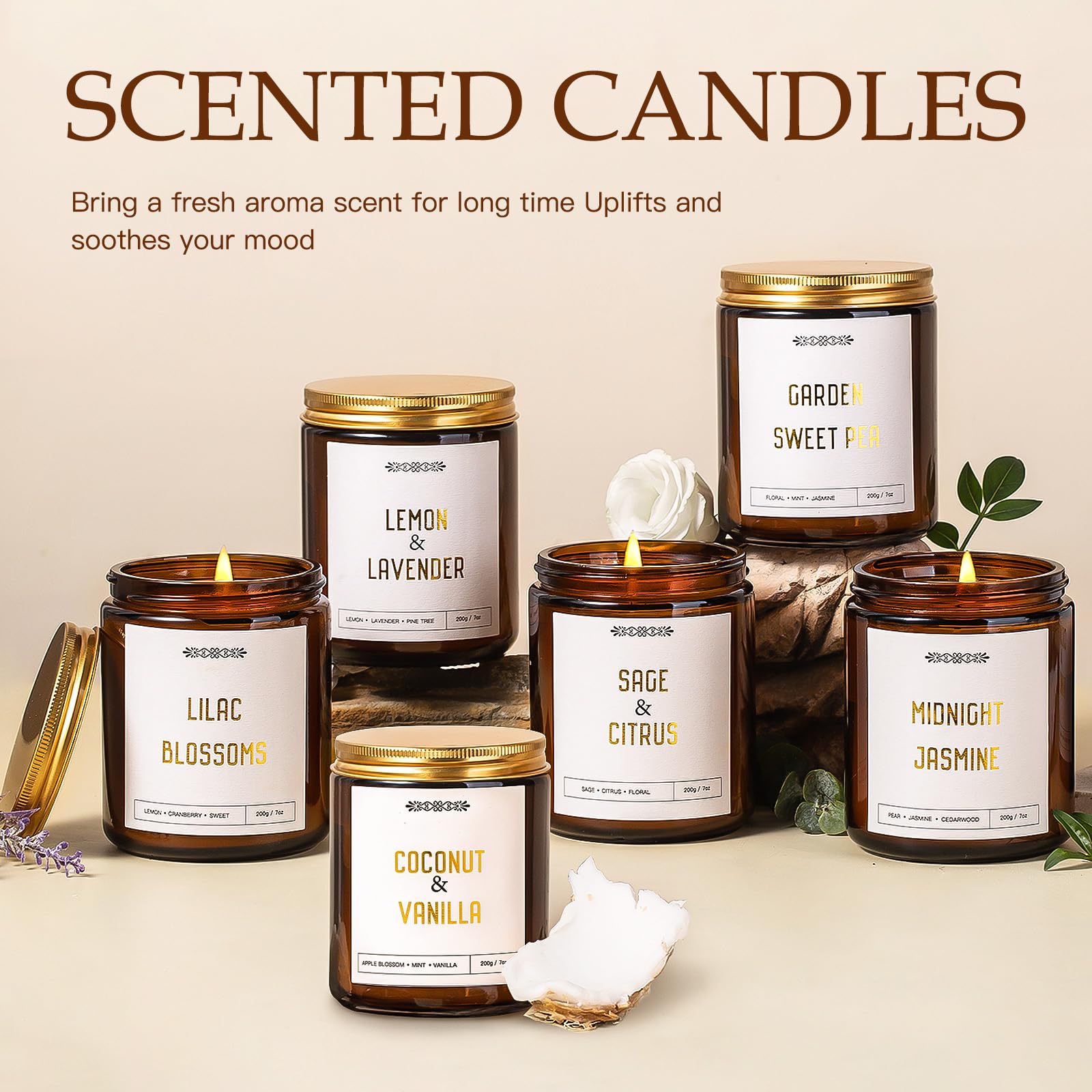6 Pack Candles for Home Scented, 42oz Amber Jar Candles Gifts for Women, 330 Hour Clean Burning Time, Natural Soy Wax and Wicks, Aromatherapy Candles Gift Set for Women, Ideal Holiday Gift