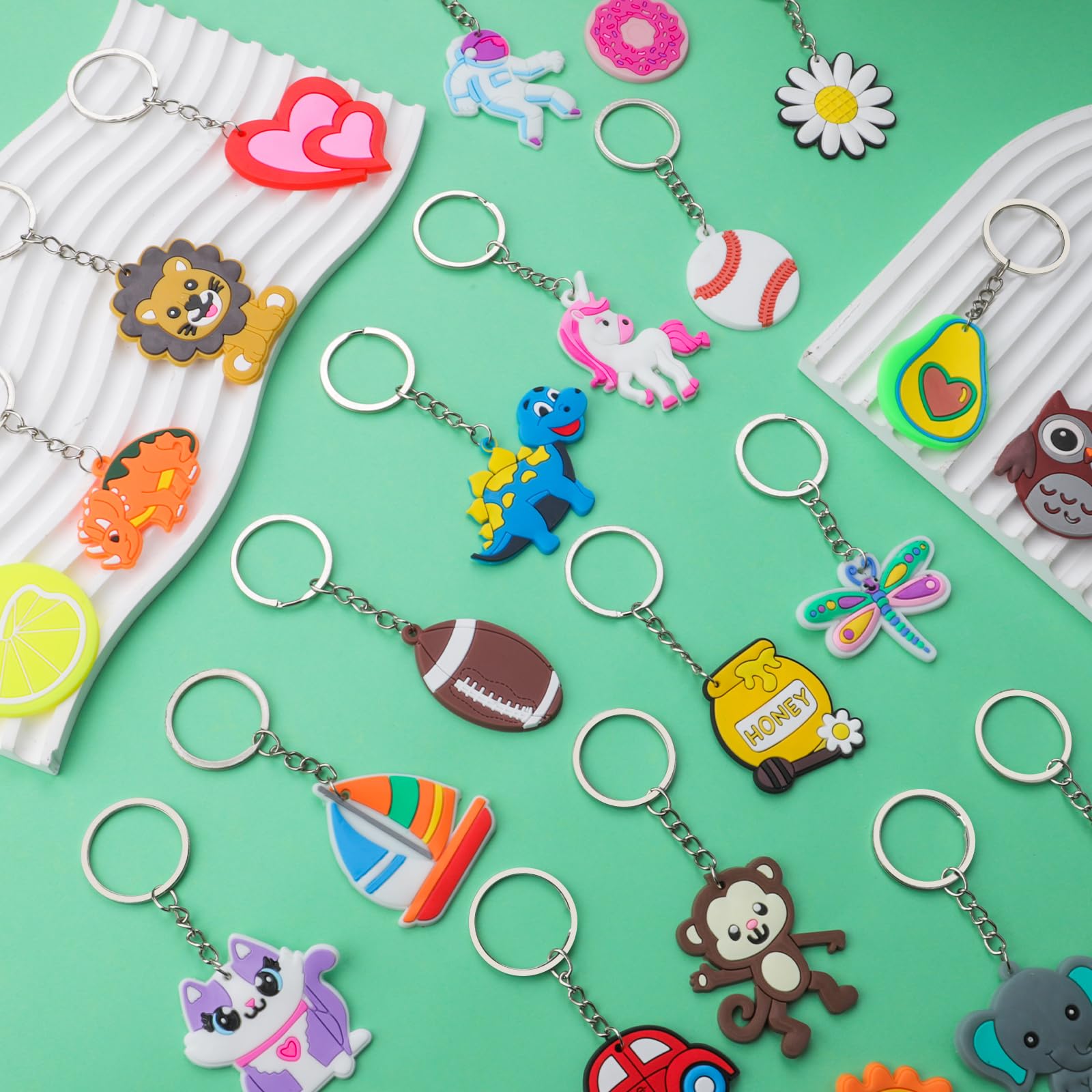 - Unique Design: our cartoon keychain are very realistic and cute. Include many different themed , about cute animals, ocean , dount, unicorn keychains, and sports, You can use them to decorate your kids' birthday parties, creating a cute environment and joyful atmosphere, bringing more happiness to them. Very mini, easy to put in a candy bag.