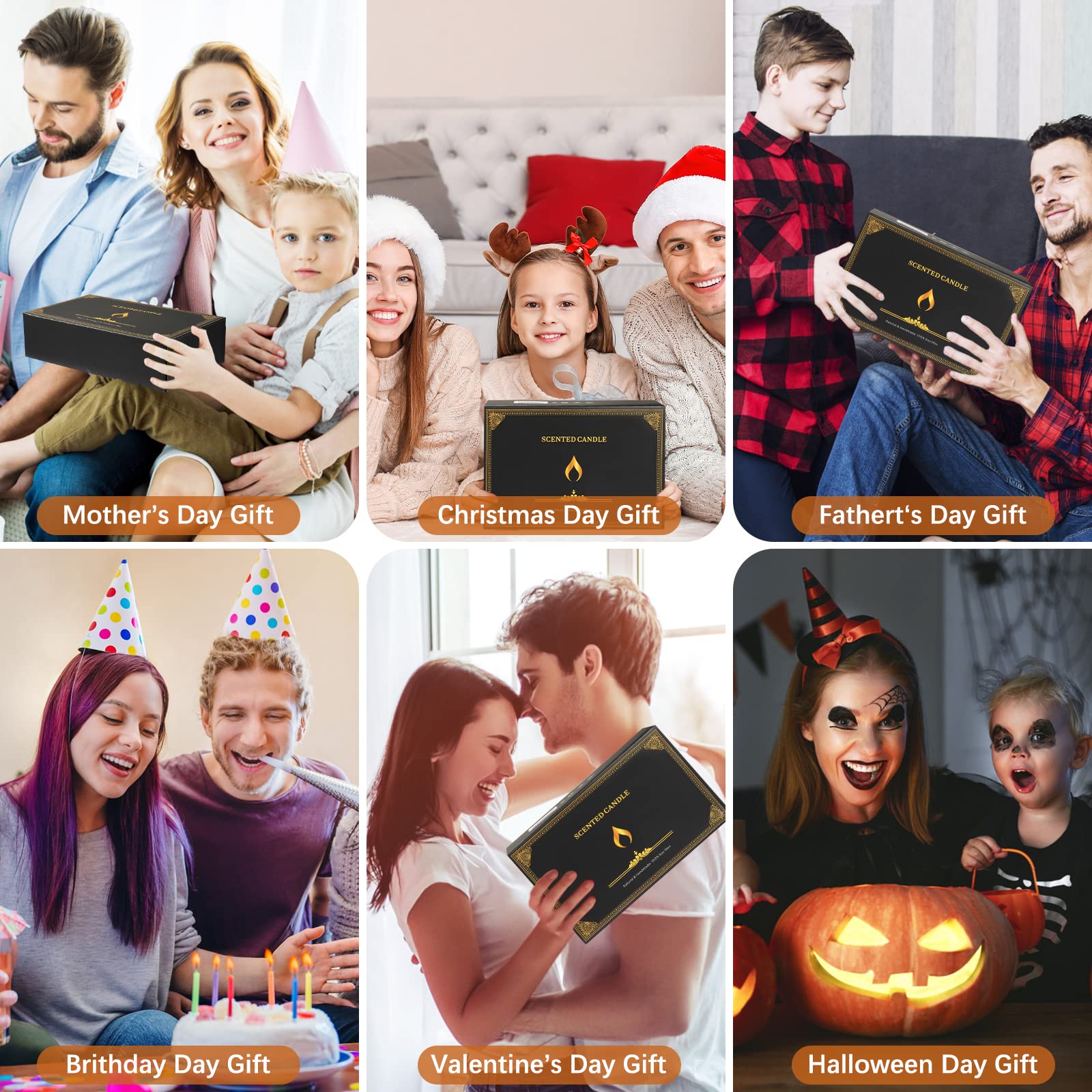 - The box is well designed with giftable packaging, which is a nice present for your family members, friends and your loved one. Every candle is designed to a portable size with minimalist design, which can be sealed and taken with you wherever you go.