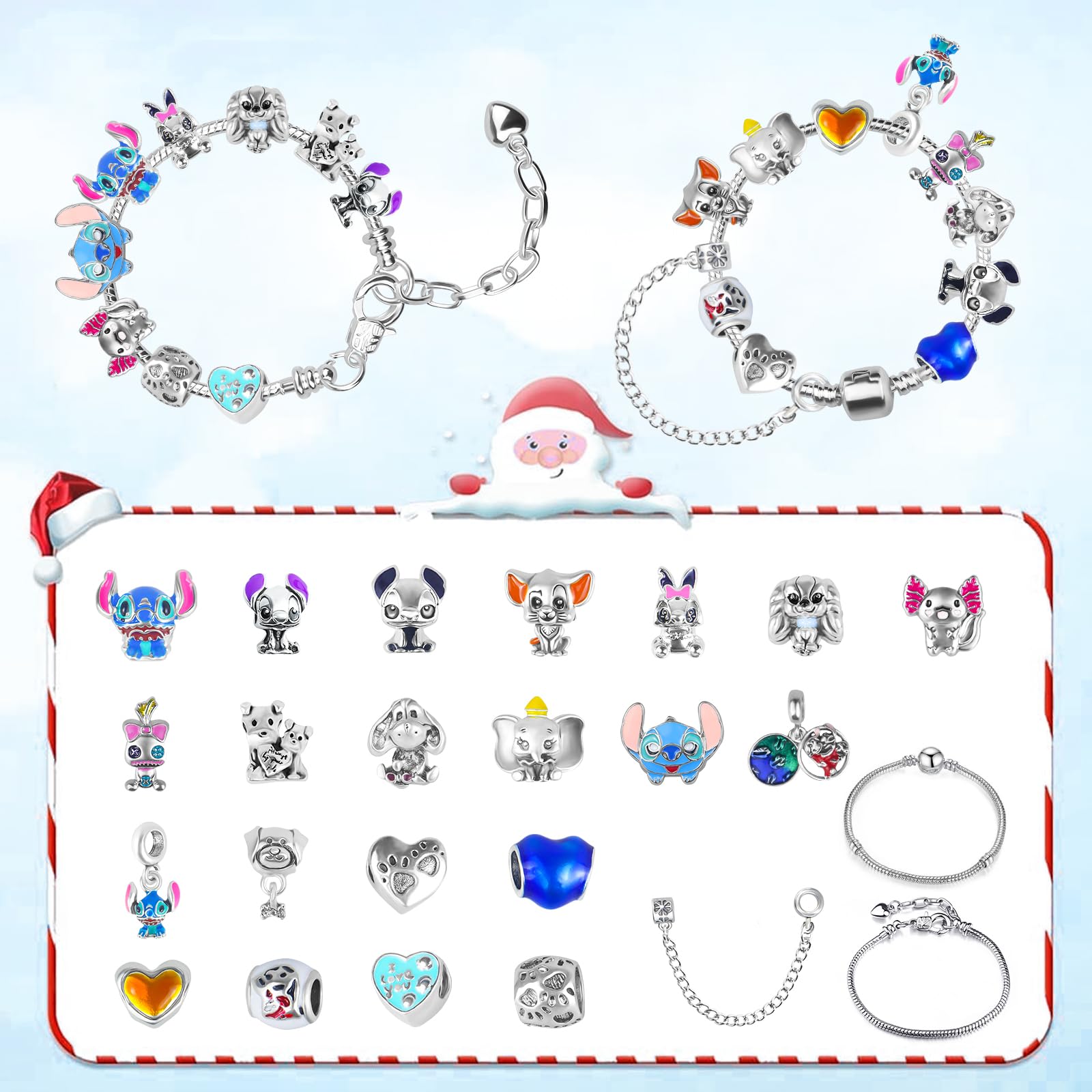Advent Calendar 2025 Girls, 24 Days Christmas Countdown Calendar with 2 Bracelets and 22Pcs Unique Cartoon Charm Beads, Christmas Gifts for Girl Kids Teens