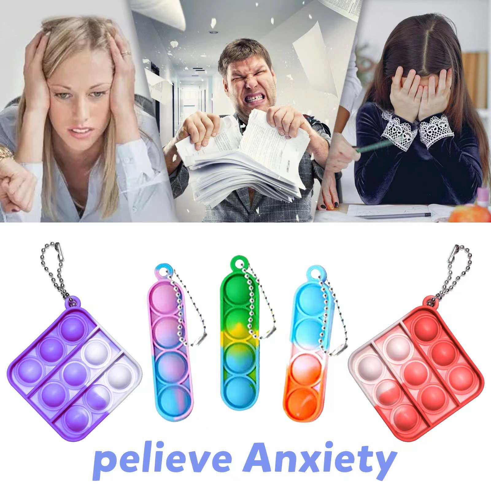 - 【Widely Used】 This mini fidget keychain not only be carried around as a keychain, but also can be used as a decompression toy,it helps to relieve anxiety and create a good atmosphere. When press the bubbles, the mini pop toy will make a slight popping sound, when all the bubbles on the front are squeezed.