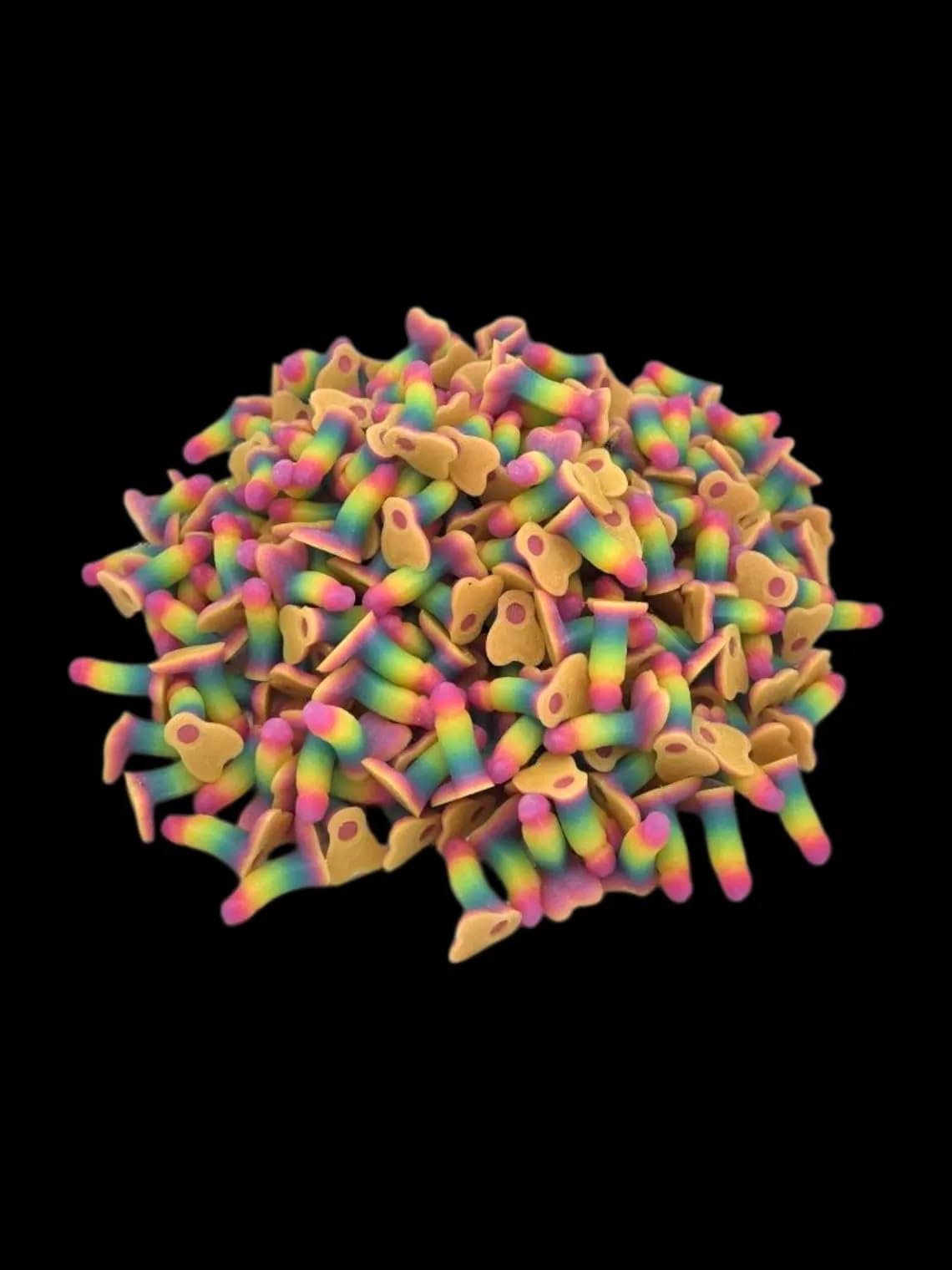 Add a touch of humor and charm to your collection with these small, 3D-printed miniature pensises! Each one measures 0.8 inches in length and is meticulously crafted with high-quality filament in a mix of rainbow Glow in the dark color!