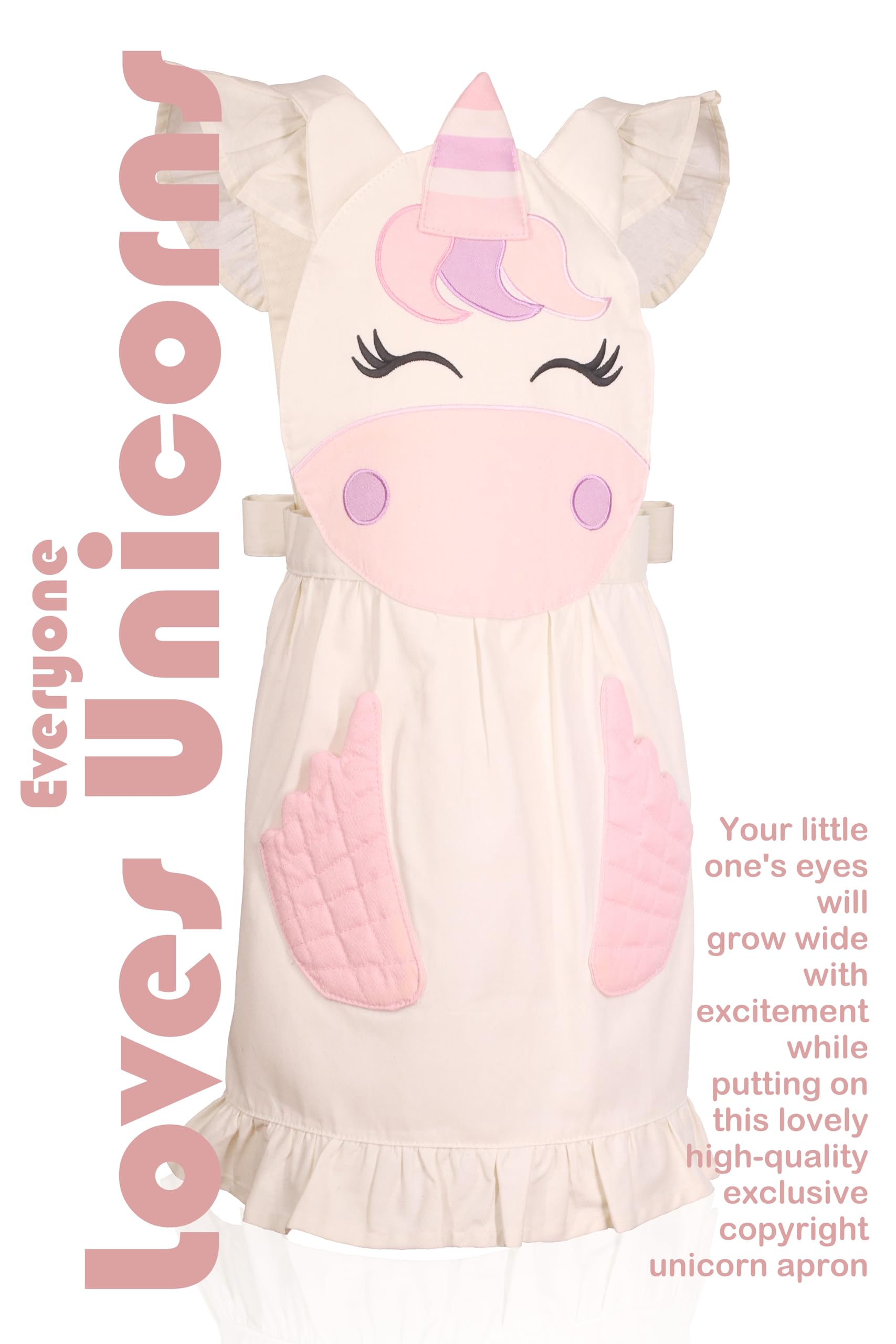 - 🧁 EVERYONE LOVES UNICORNS: Your little one's eyes will grow wide with excitement while putting on this lovely high-quality exclusive copyright unicorn apron. Made from 100% canvas cotton, it has cute, embroidered eyes which give it a touch of classic texture. The soft ruffles on the straps and hem and dainty pleating add dramatic and voluminous flair. The quilted wing pockets, a little adorable, padded horn top off this beautiful and creative design.