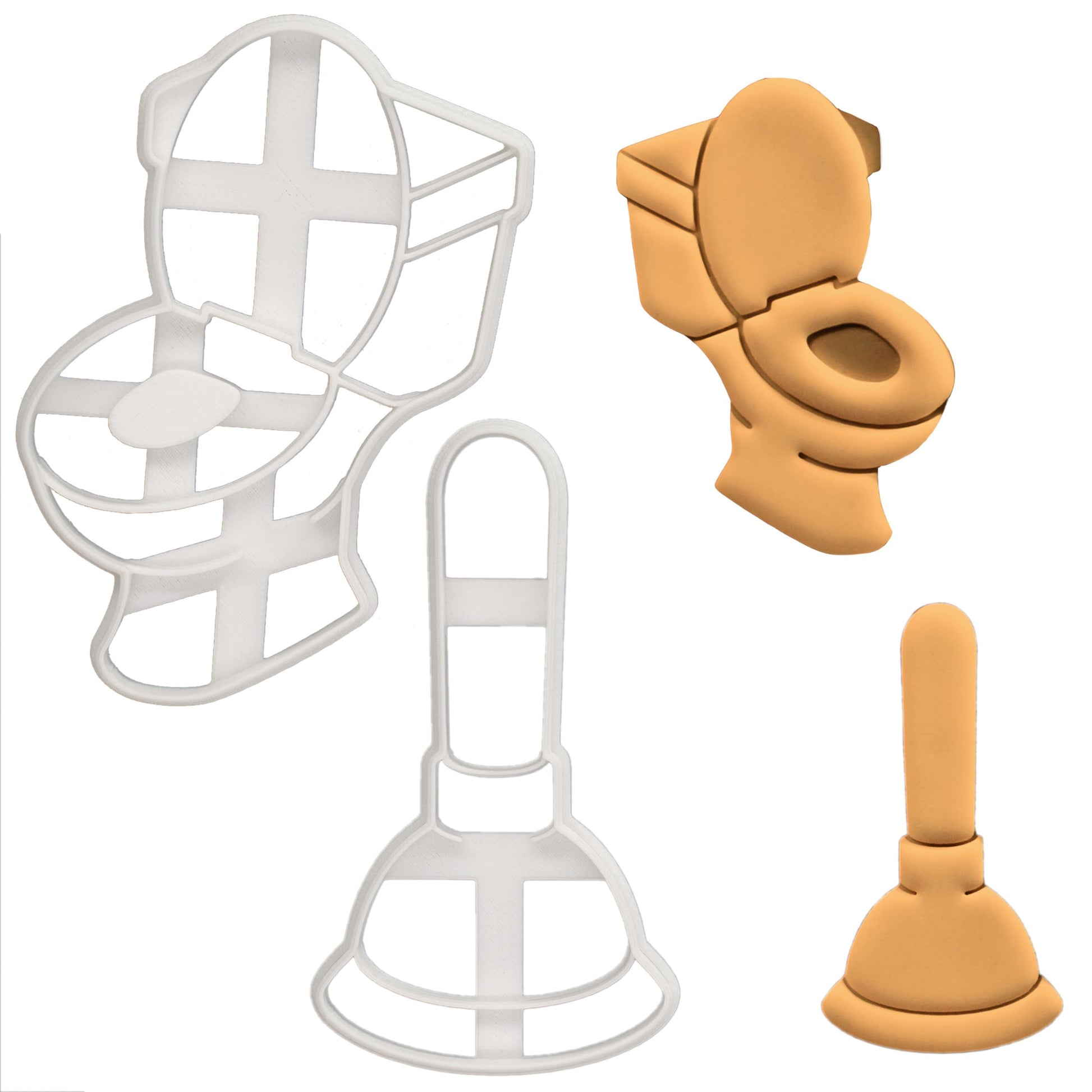 BAKERLOGY Set of 2 Toilet Bowl and Plunger Cookie Cutters - Detailed Biscuit Cutter Design for Baking and Crafts, ideal on fondant, dough, clay