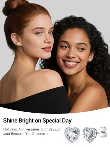 - Sparkling Heart Birthstone Earring: Delicate 5mm Heart cut AAA+ cubic zirconia birthstone with 1mm diamond halos of cubic zirconi, high-polish 925 sterling silver construction resists oxidation and discoloration. The crystals earring sparkly and dazzling, shiny like real diamonds-they strike the perfect balance between daytime office wear and gowns for special occasions