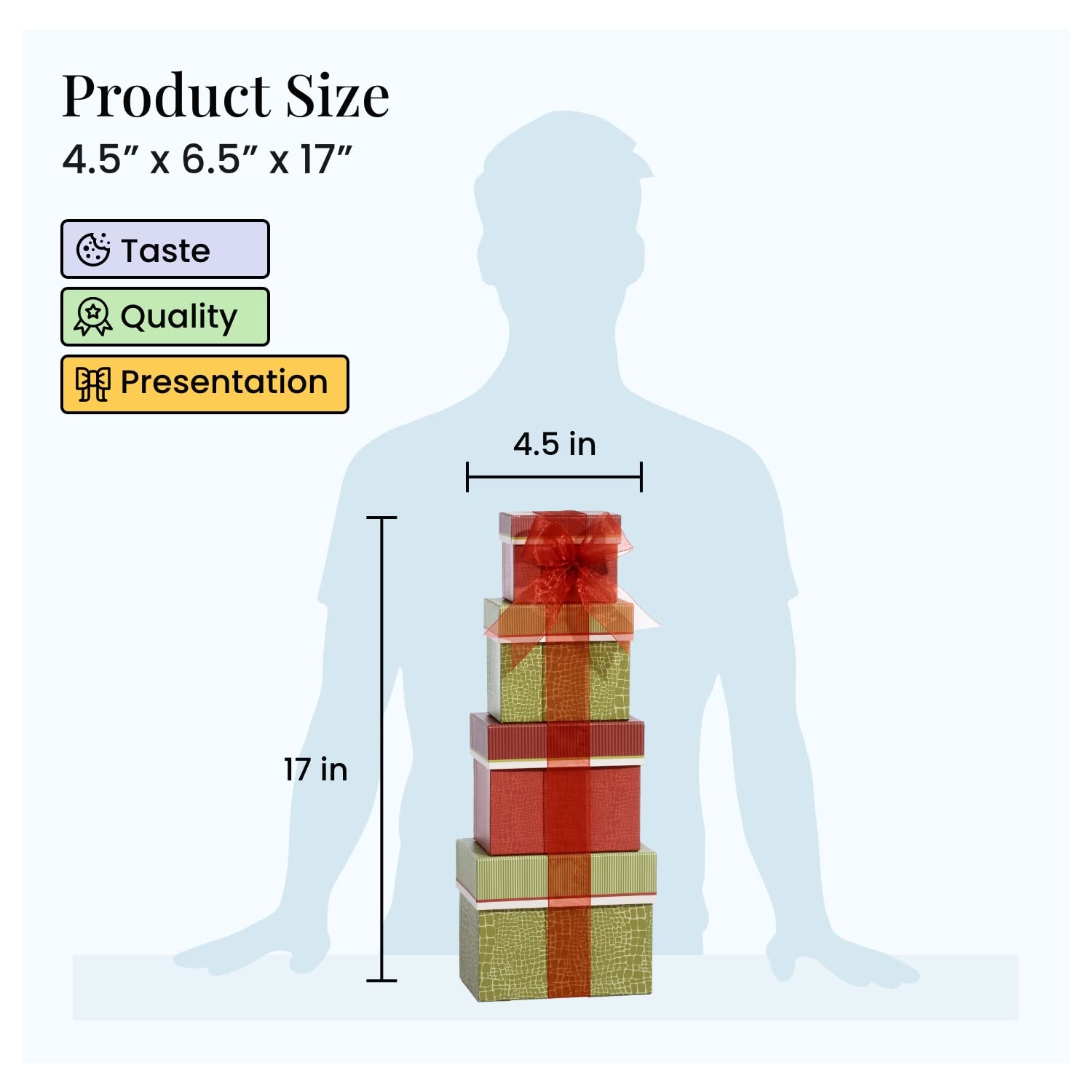 - REUSABLE CONTAINER: This gift tower measures 5' x 7' x 17' and includes 4 coordinating, stacked boxes. Reuse for decoration or storage for photos, mementos, and household items. Each gift includes a gift tag for a personalized touch.