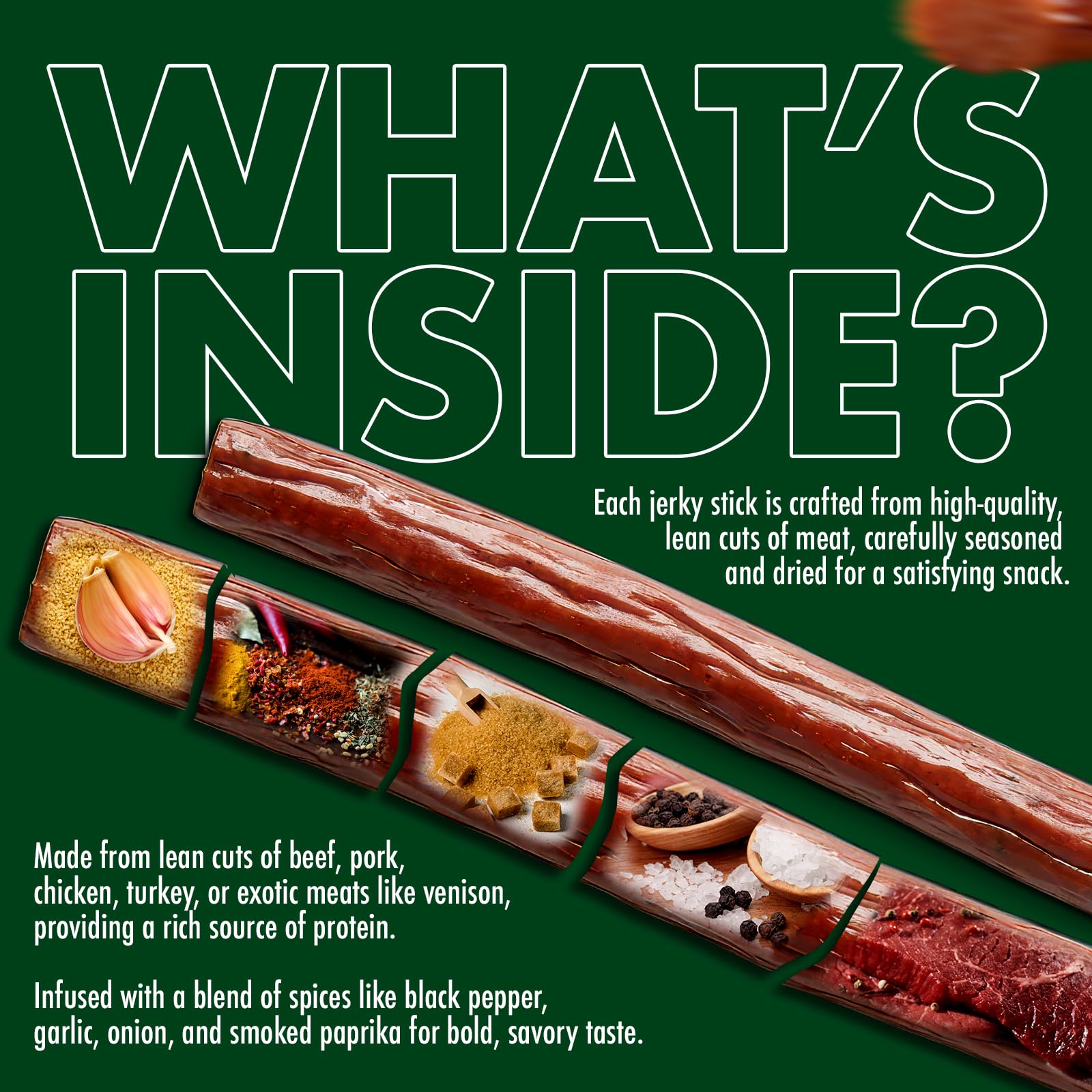 - WILD GAME MEAT VARIETY: Enjoy the thrill of 15 distinct wild game jerky sticks in one pack. From alligator to buffalo, elk to venison, each stick offers a unique flavor adventure that stands out among other exotic snacks.