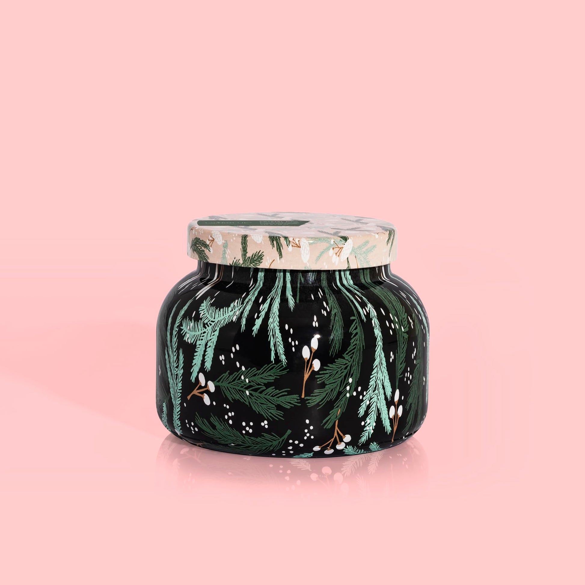 - Capri Blue Crystal Pine Scented Candle - Walking in a winter wonderland with the Crystal Pine Holiday Pattern Play Signature Jar! A decorative and dark vessel filled with frosted fir, snowy woods, pine and sage. This candle will sure bring out the holiday feels.