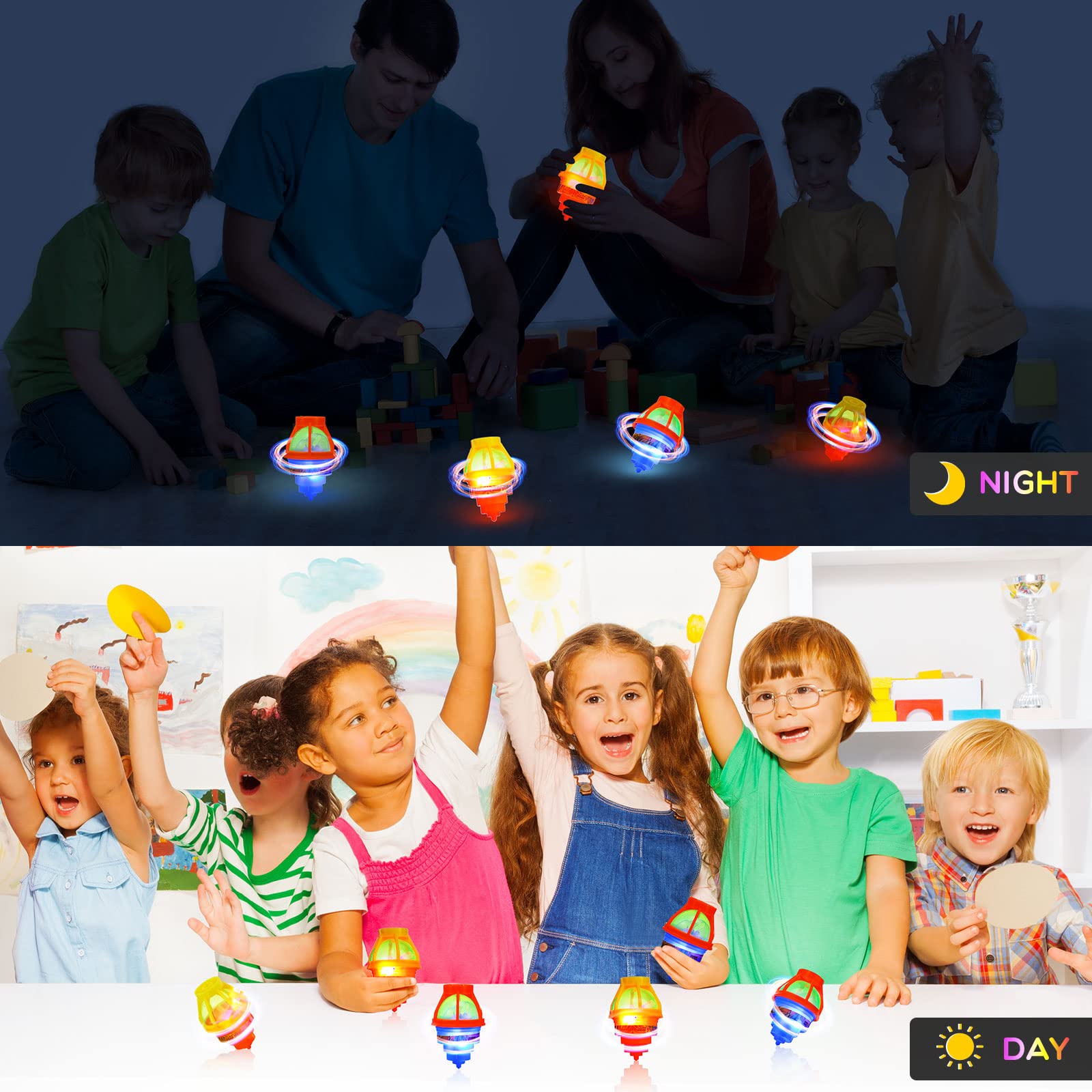 - Easy and Funny: the flashing spinner light toy is easy to play, you just need to attach the gyroscope to the top and twist the handle 3 times then press the button; After that, these light up spinner toys will spin and glow, which is very funny and suitable to play together with others