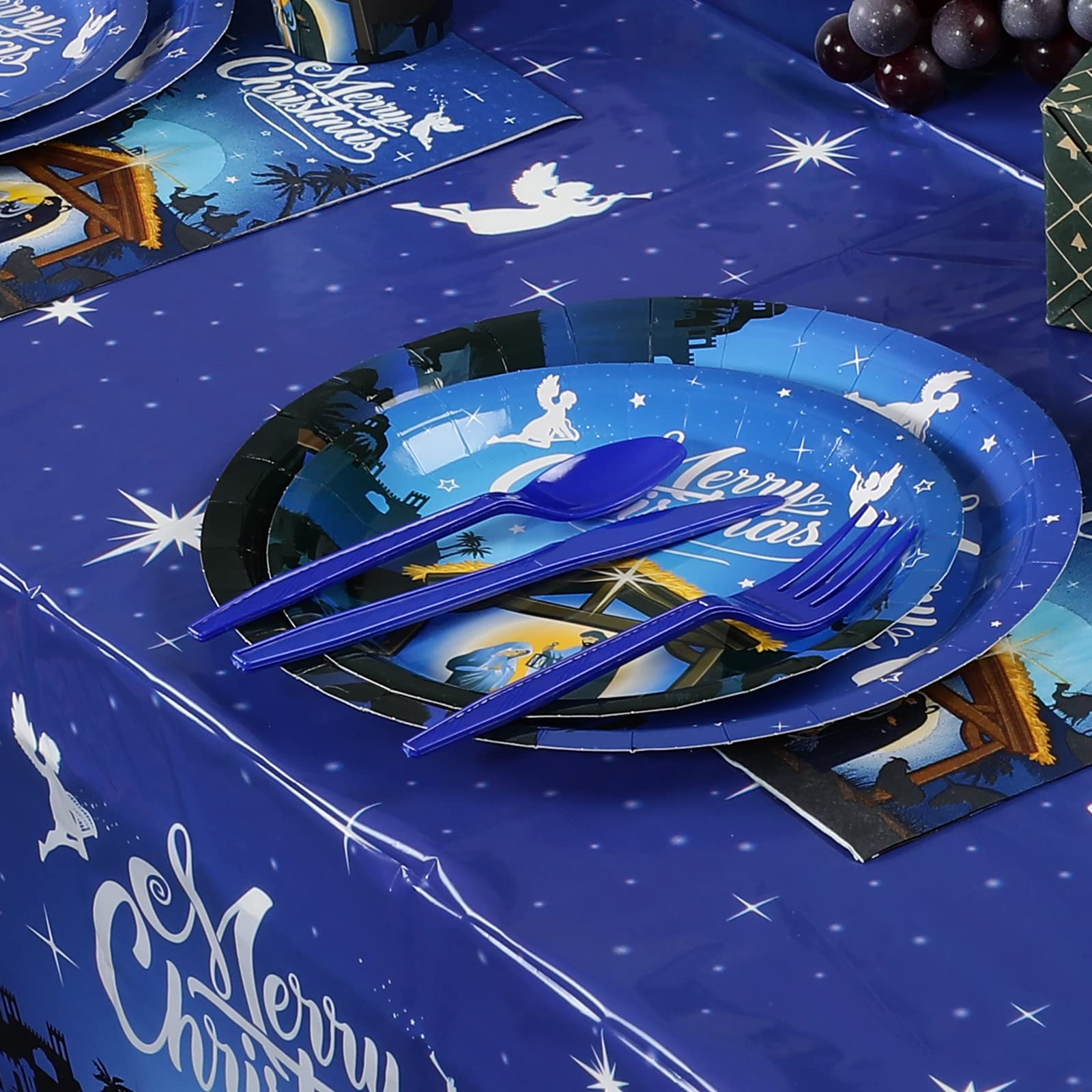 - What's Included: Christmas Jesus Party Supplies include 25 paper dessert Plates (7'), 25 paper dinner plates (9'), 25 cups (9oz), 25 decorative napkins (3.9x7.8'), 25 sets of knives, forks and spoons, enough for serving 25 guests.