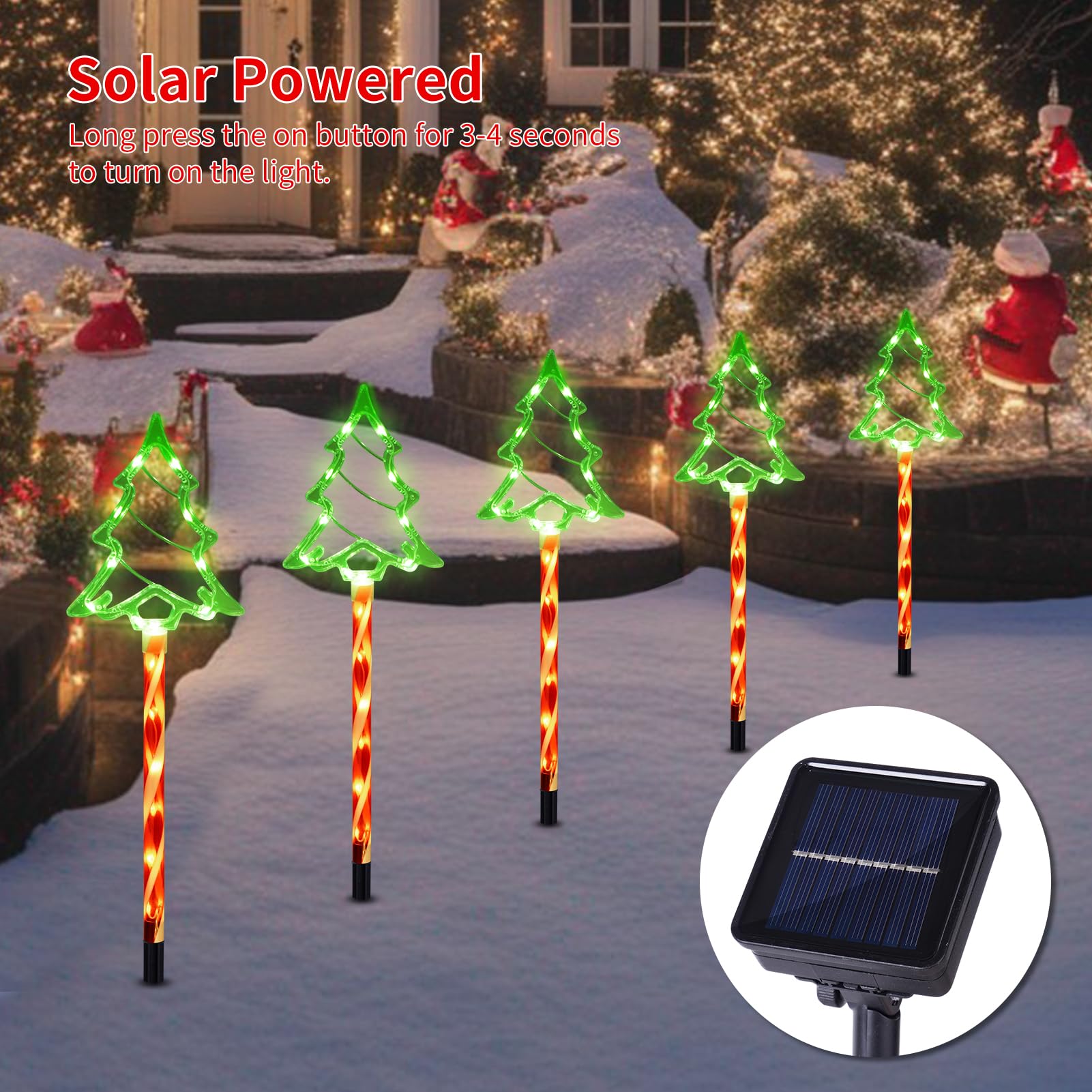 Christmas Solar Pathway Lights Outdoor Decorations, 8 Modes Xmas Tree Candy Lights Waterproof Led Garden Stake Light for Walkway Yard Lawn Porch Holiday Decor 5-Pack (Red Tube Tree, 5 Pack)
