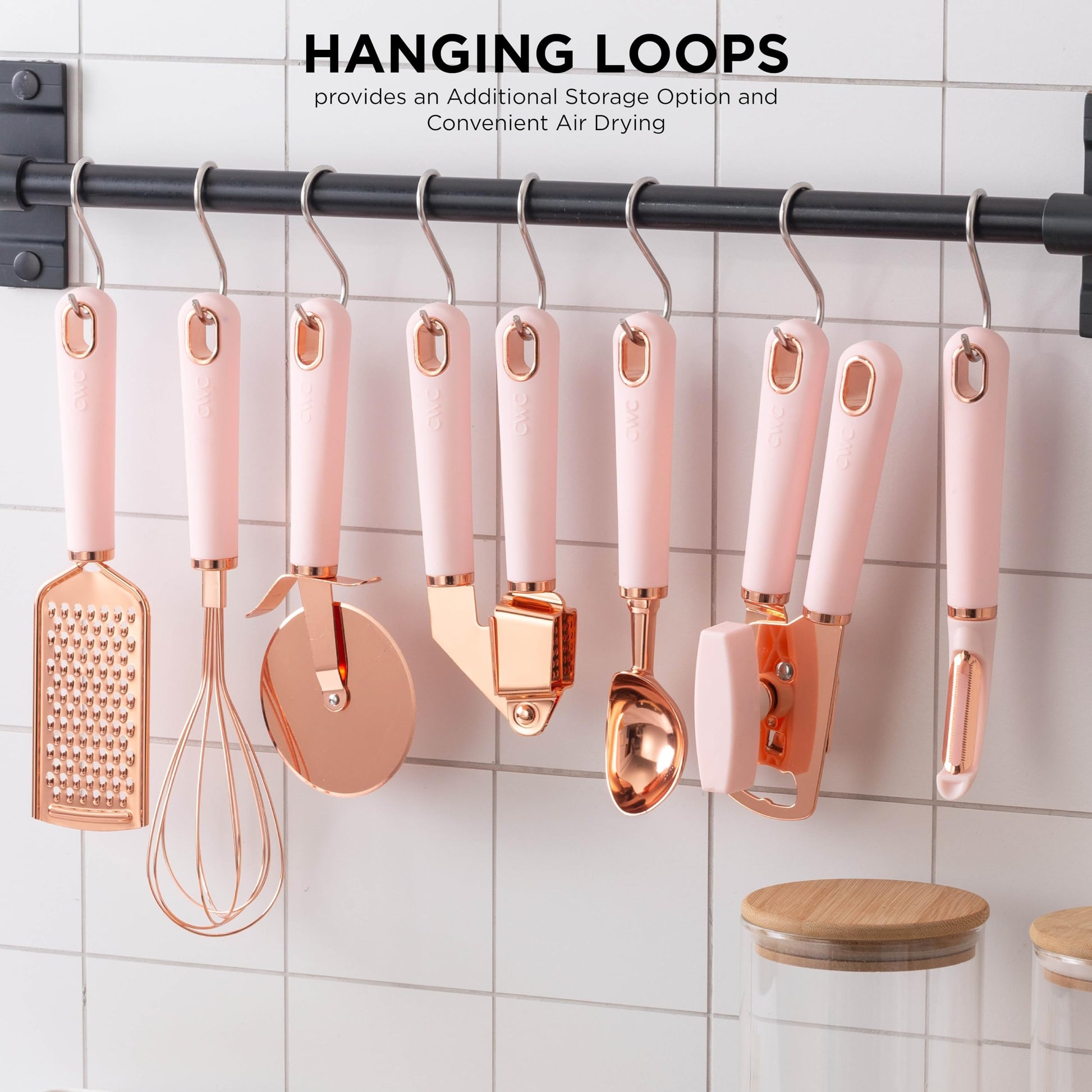 COOK WITH COLOR Kitchen Gadget Set Copper Plated Stainless Steel Utensils with Soft Touch Handles, Copper Pink, 7 Pieces