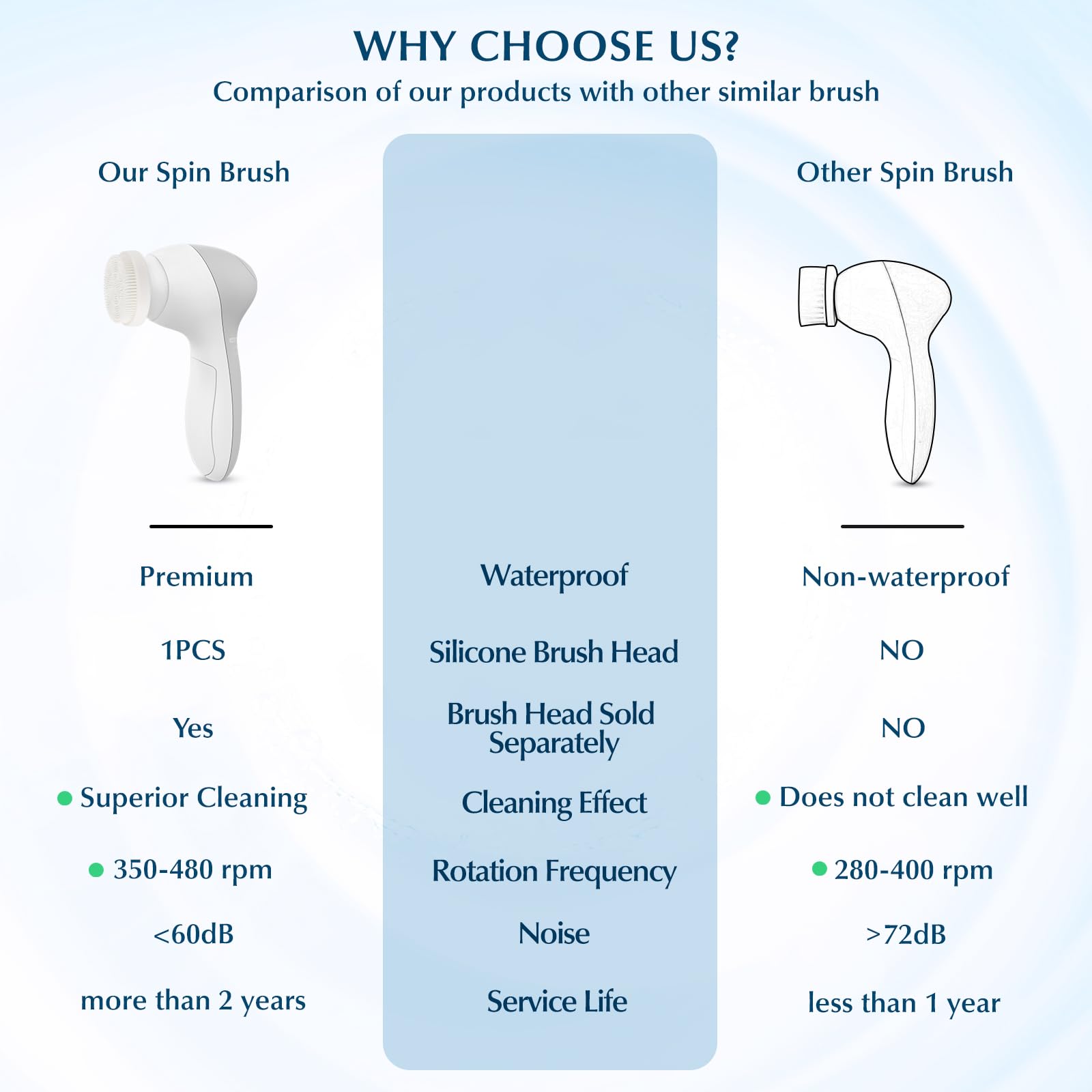 - SUPERIOR PERFORMANCE & DURABLE: We are committed to making the quality better through experimental comparison. The motor of our portable face brush far exceeds the market level, provides twice the power of regular roating brushes. It is equipped with three cleansing bristle brush heads for replacement to ensure clean use as well as a durability to make your skin healthier
