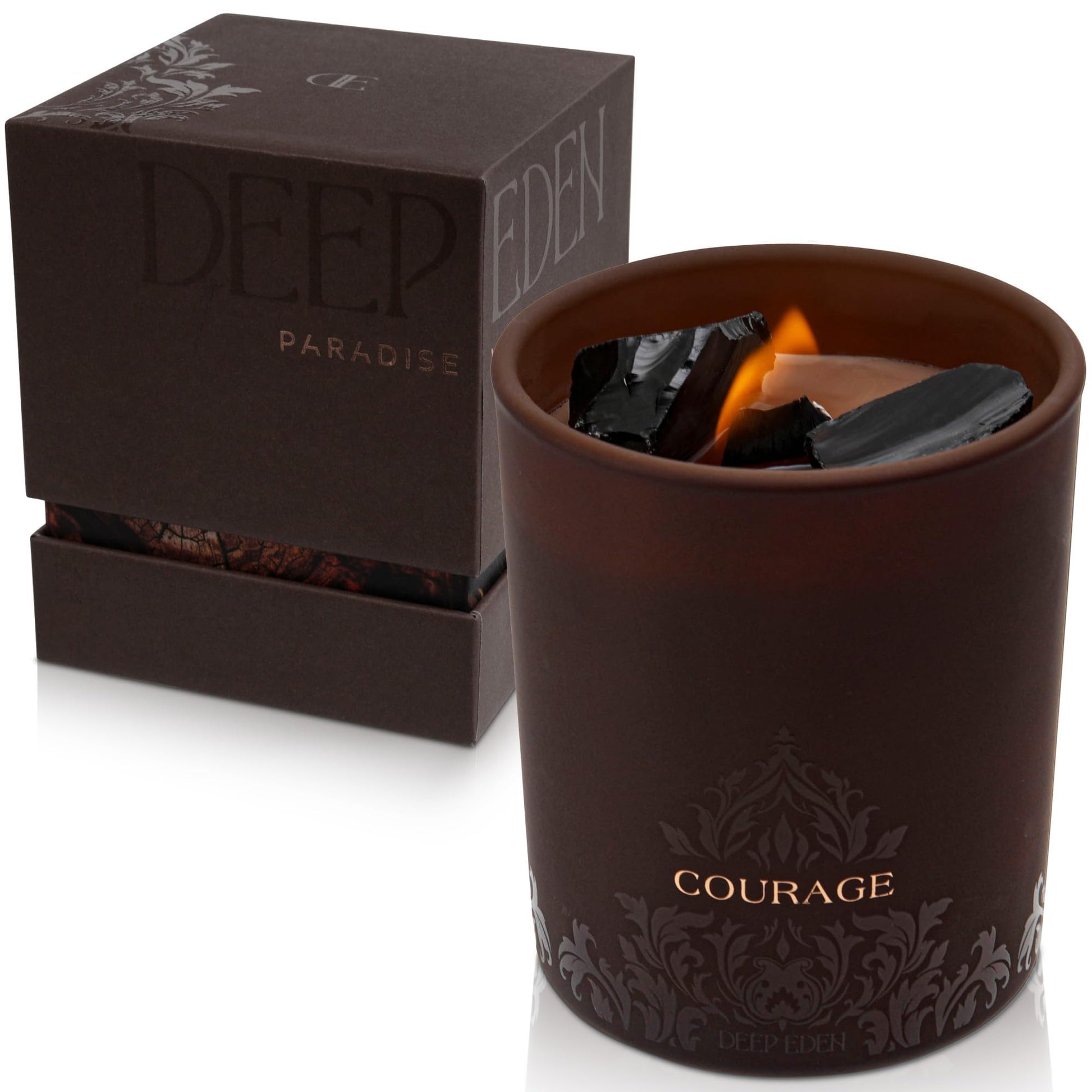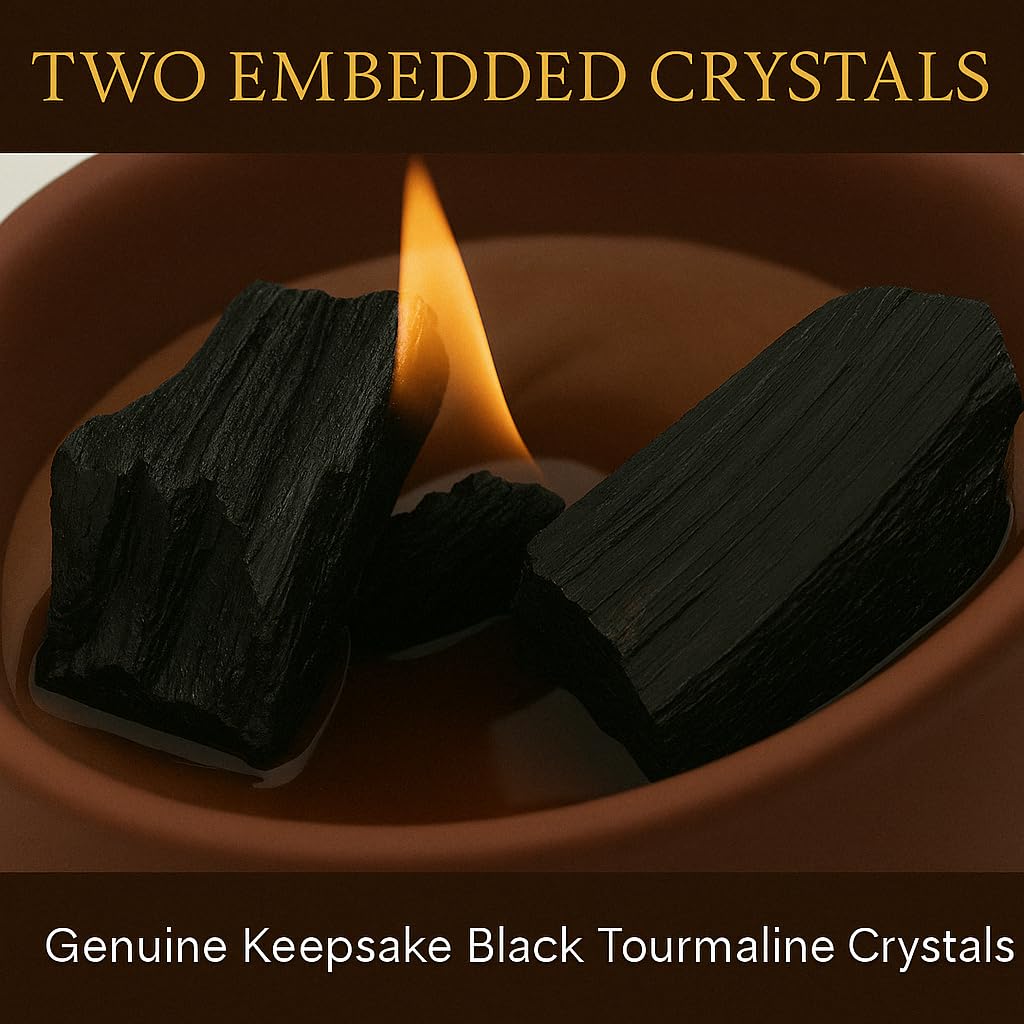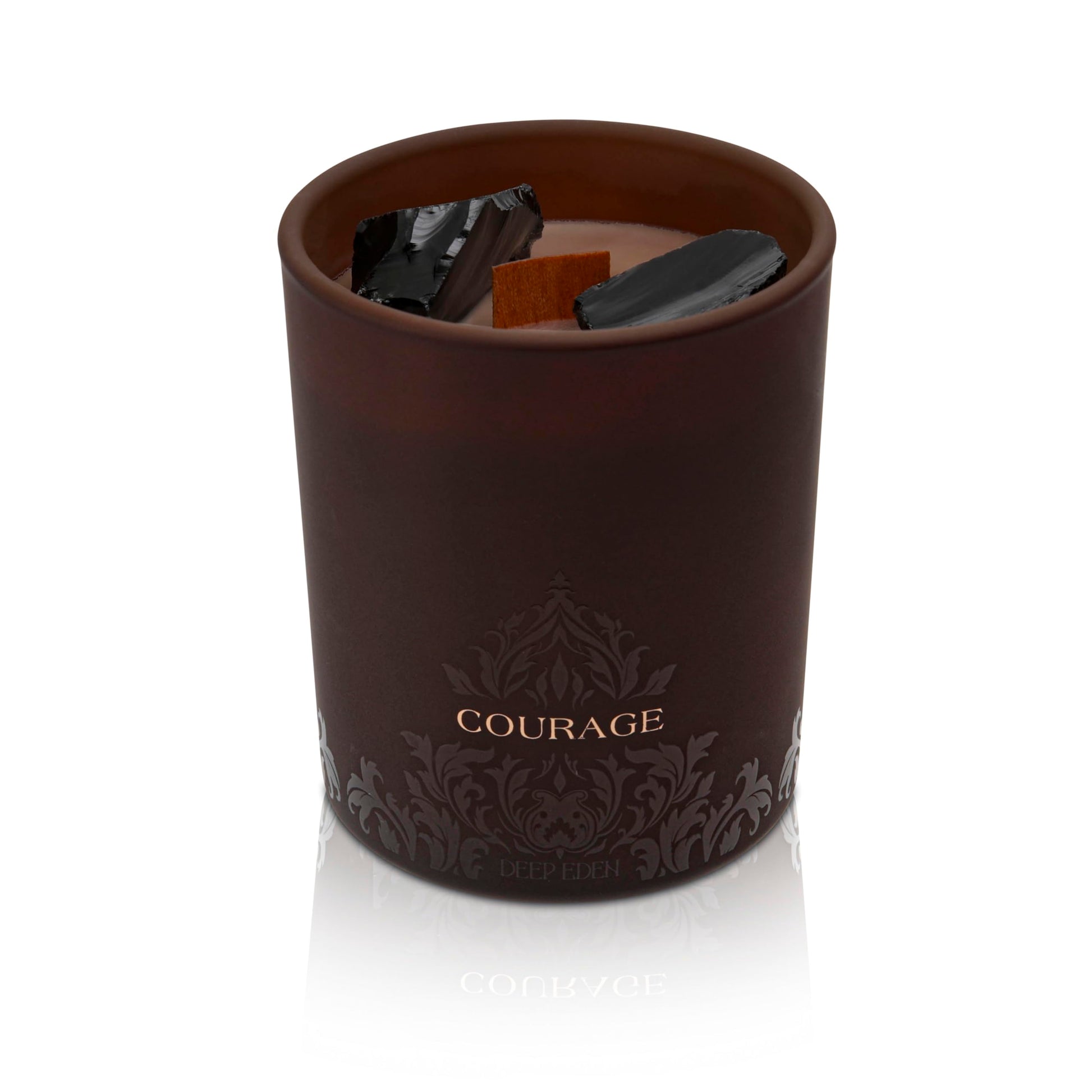 Deep Eden Empowerment Crystal Candle, 7.4 Oz, Brown - Forest Mahogany Scented Candle - Candles for Men with Wooden Wick, Black Tourmaline, Essential Oils & Premium Botanical Soy, Coconut and Beeswax