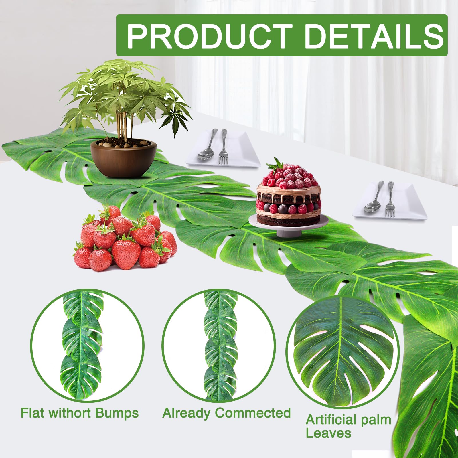 - - Complete Set: Each package includes 4 exquisite artificial palm leaves table runners that are interconnected to create a seamless and visually stunning table setting. With these runners, you can effortlessly achieve the perfect tropical look for your event.