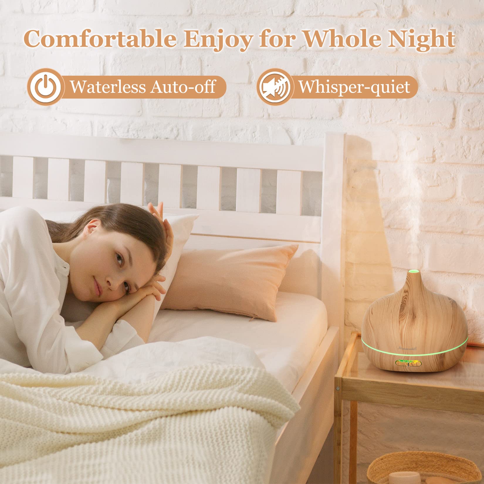 Essential Oil Diffuser Aromatherapy Diffusers: 550ml Ultrasonic Cool Mist Large Aroma Scent Essential Oils Diffuser Waterless Shut Off for Bedroom Home Office Living Room Wood Grain