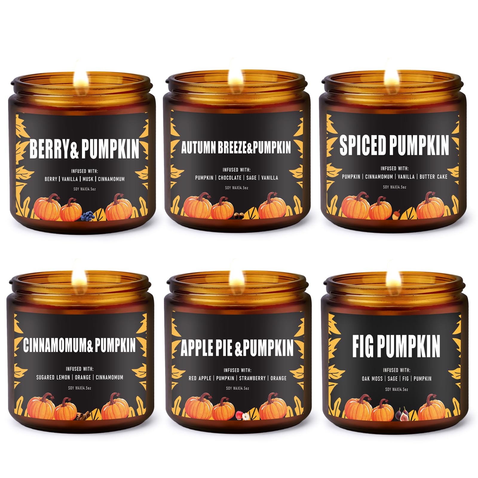 Fall Candle Set/6Pack Pumpkin Scented Candles for Home - Candle Gifts for Women Men, Soy Candles | Jar Candle Scents of Berry, Sugared Lemon, Spiced Apple Pie,AutumnâS Breeze,Cinnamon,FIG Pumpkin
