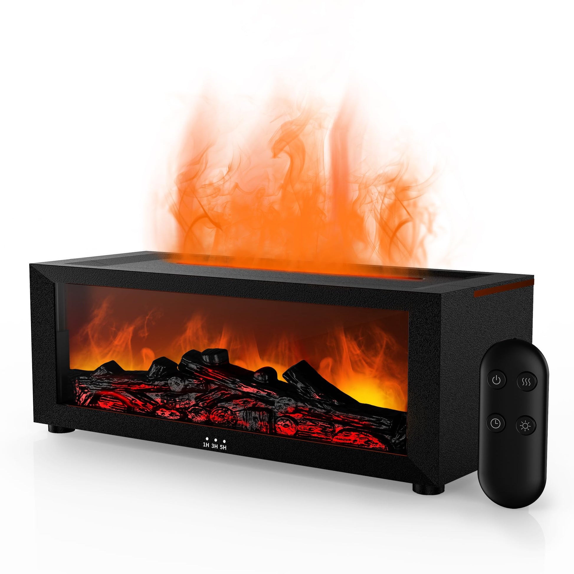 Fireplace Flame Air Diffuser Humidifier,7 Colors Aromatherapy Essential Oil Diffuser,Ultrasonic Aroma Humidifier with Timer for Home,Bedroom,Office,Yoga (BlackB, L)