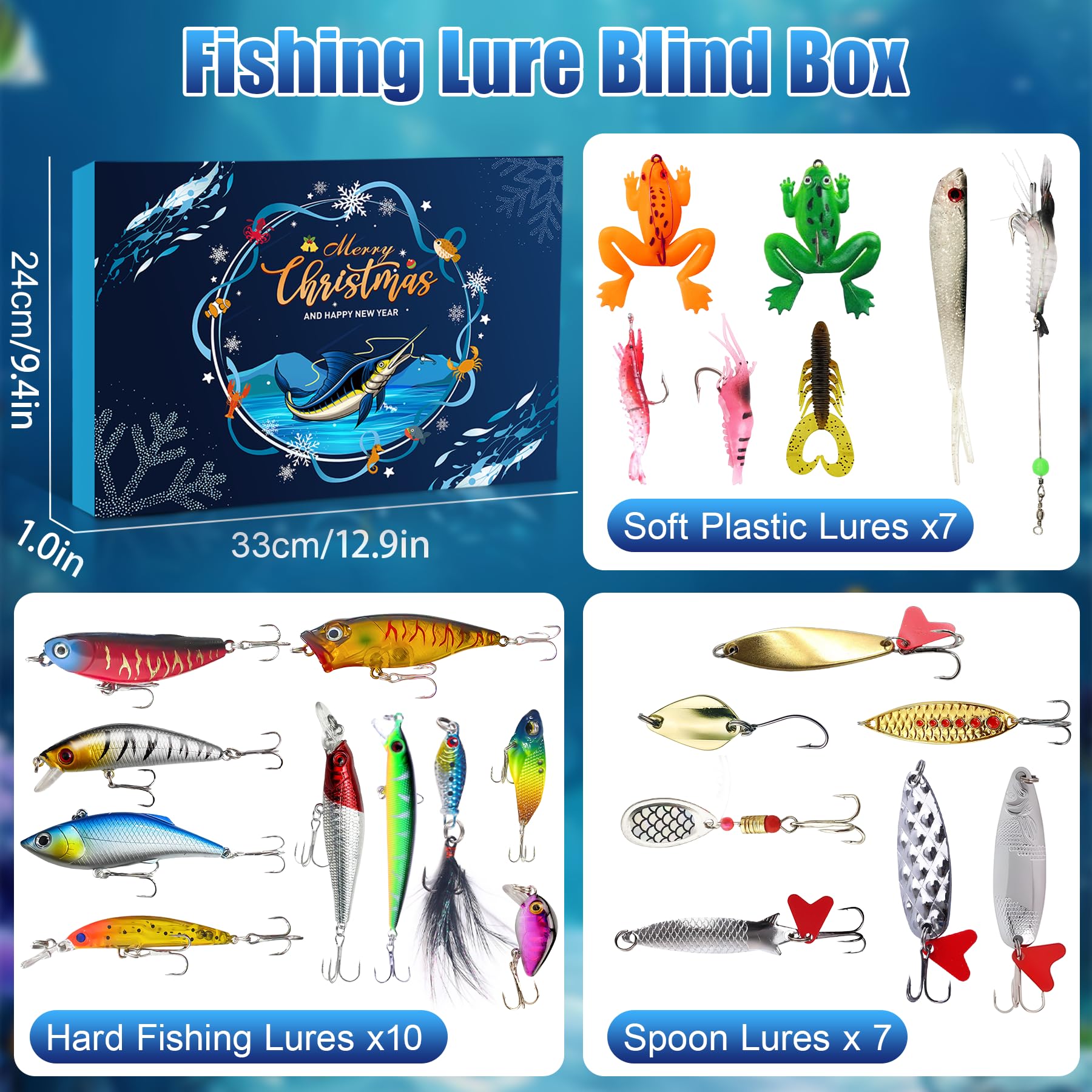 Fishing Advent Calendar 2025, Fishing Lure Set -24 Days of Fishing Advent Calendar Surprise Christmas Countdown Fishing Gifts for Granpa Dad Boyfriend Brother Fishing Lovers Christmas Gifts