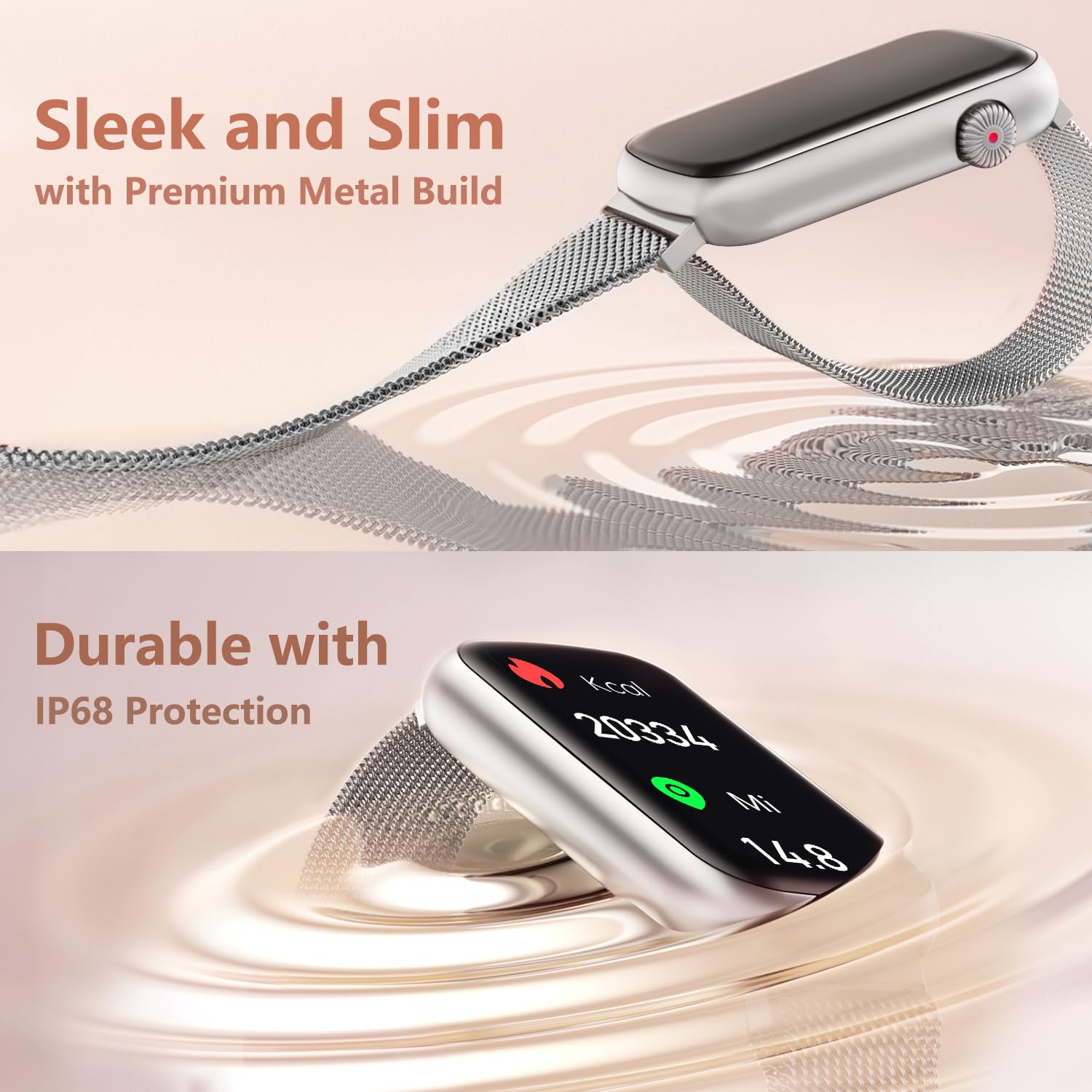 - Smart Functions: An easy-to-use activity fitness tracker with 7 sports modes and various intelligent features. DIY watch face, call and message notifications, weather, drinking and sedentary reminder, alarm clock, music control, and female menstruation period reminder.