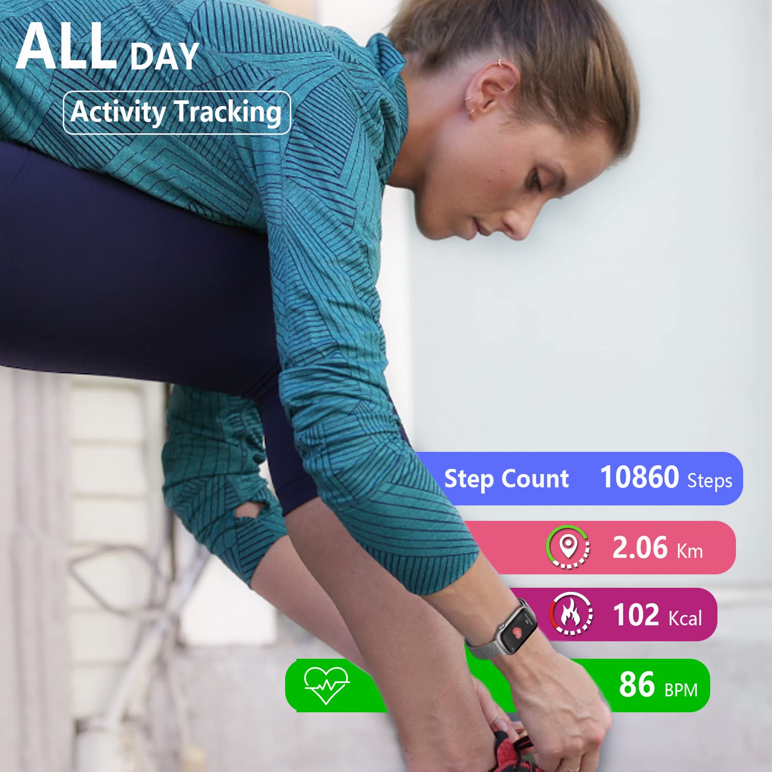 - Track all-day activity: Your steps, distance, and calories burned will automatically count and record.