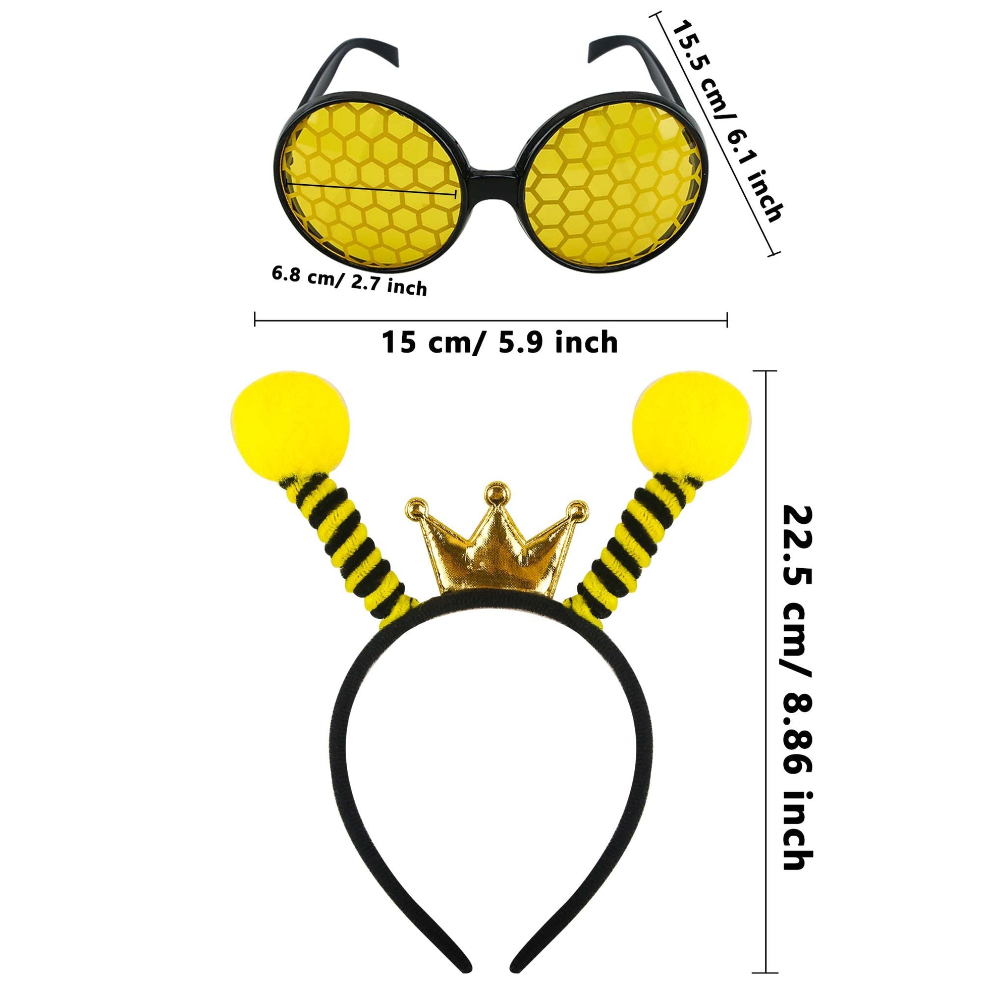 - 【Proper Size】: the bee crown headbands are about 22.5 cm x 15 cm/ 8.86 x 5.9 inch, and the bee glasses are about 15.5 x 6.8 cm/ 6.1 x 2.7 inch, suitable for most adults and kids to wear