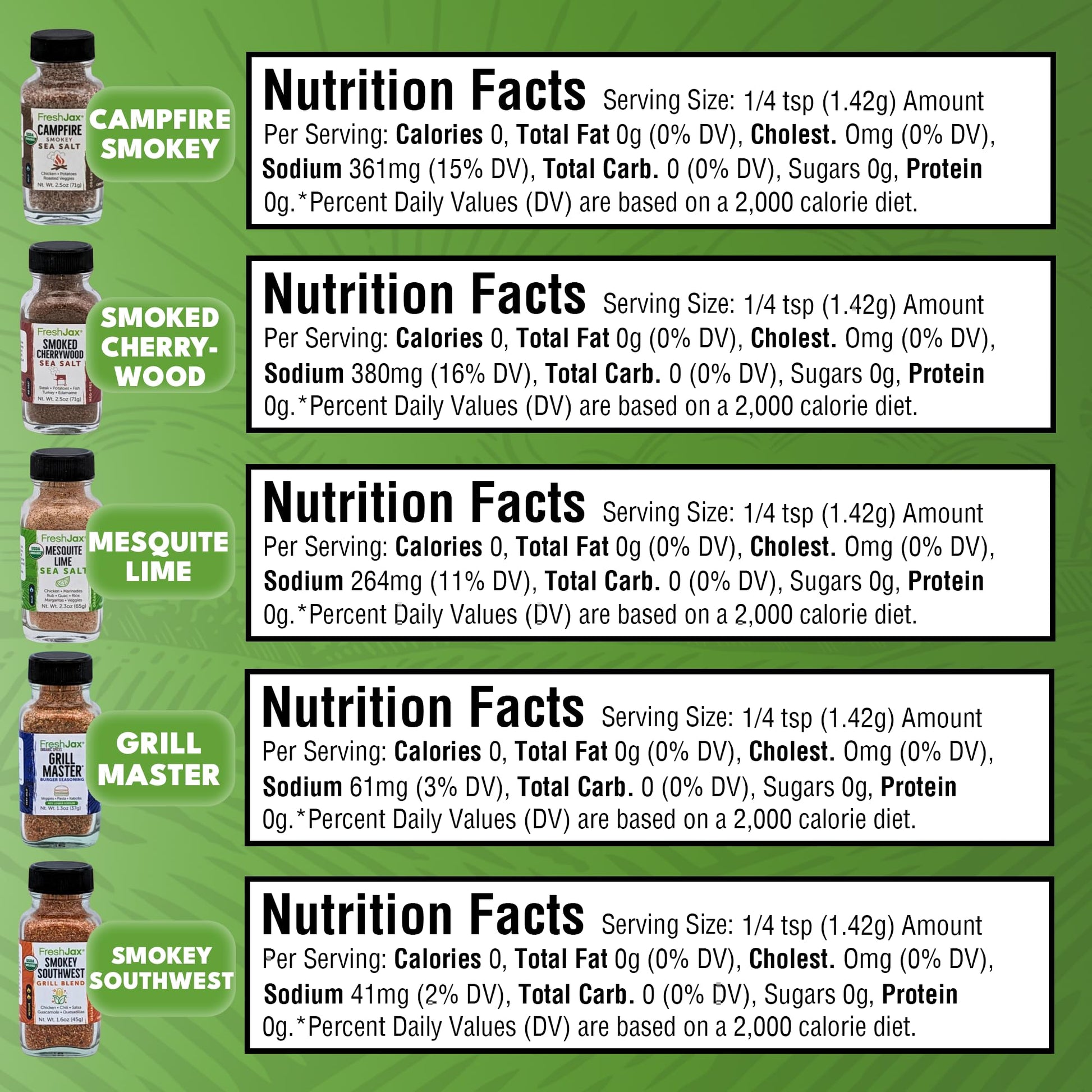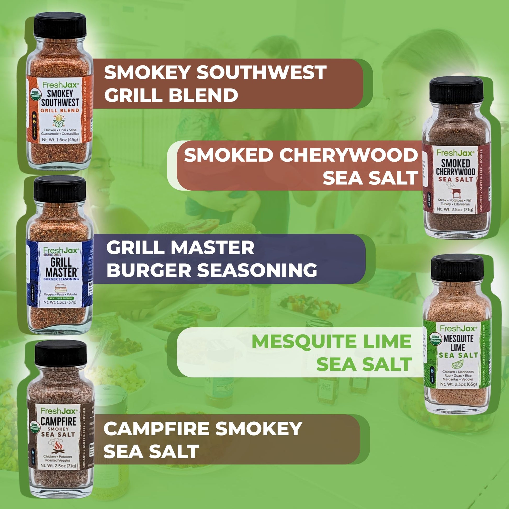 FreshJax Smoked Seasoning Gift Set | 5 Sampler Sized Organic Smoked Spices | Grilling Christmas Gifts for Men, Dads, Father | BBQ Grill Spices and Rubs Gift Set Packed in a Giftable Box