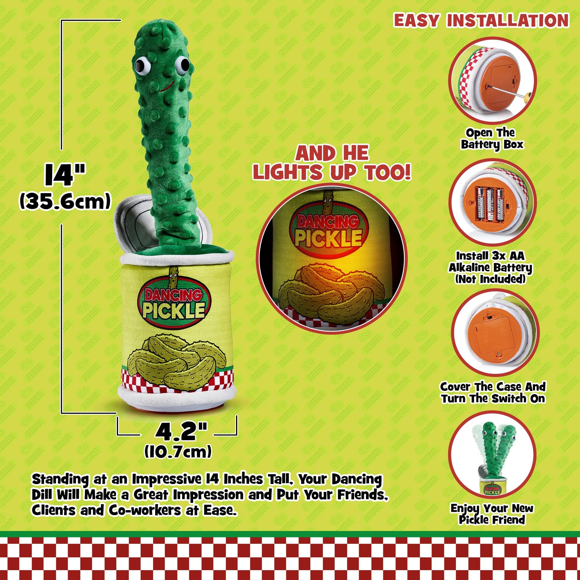 - THE PERFECT GIFT FOR PICKLE PUNS AND PRANKS: With its unique combination of humor and musical talent, this toy is perfect for anyone who loves a good pun or enjoys playing the occasional prank. But it's not just about the laughs - this singing sensation also packs a punch when it comes to performance. Its impressive sound quality ensures that the jazz and scat song it sings is truly a treat for the ears. And with its fun light-up feature, it's sure to be a hit with kids and adults alike.