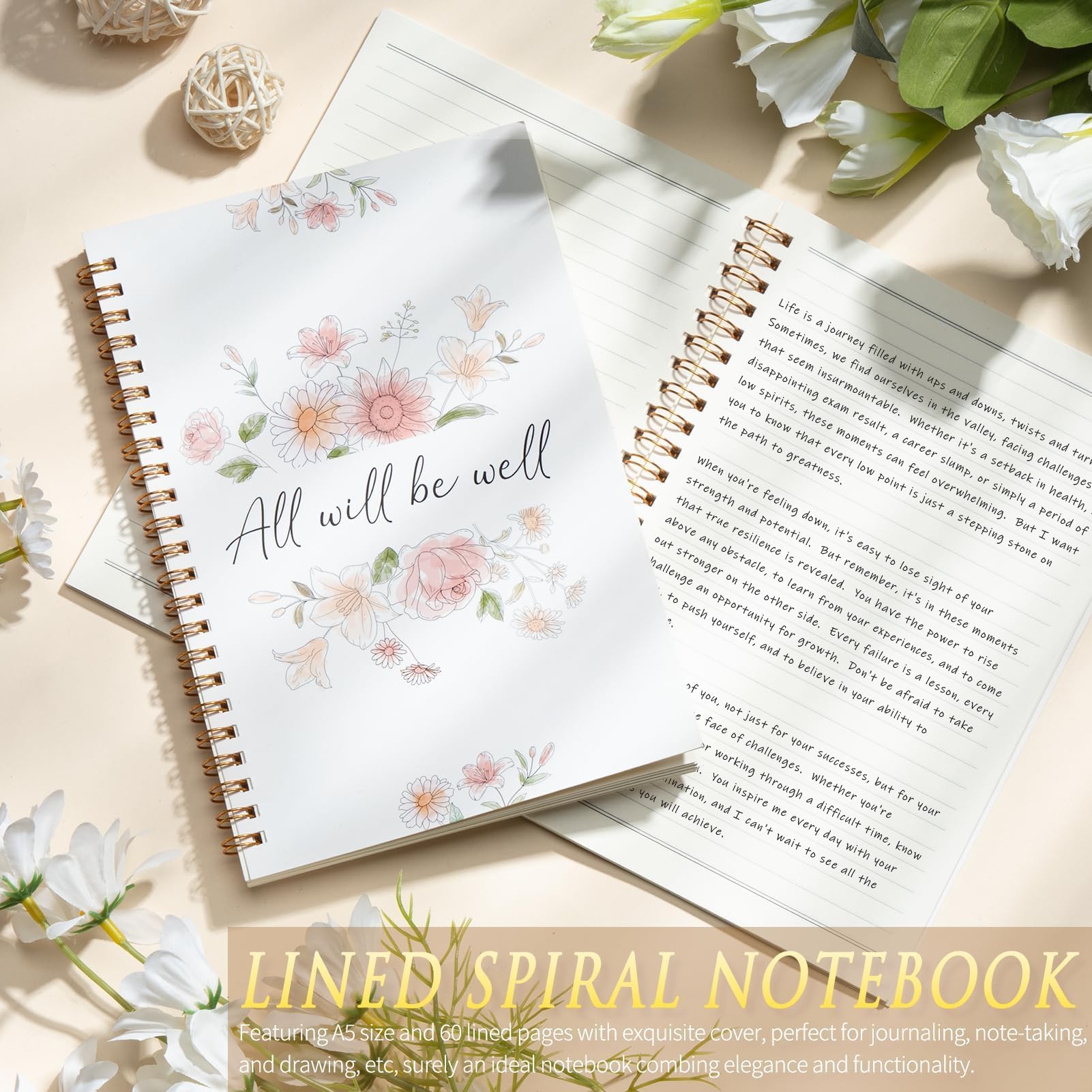 - PRACTICAL LINED SPIRAL NOTEBOOK: Designed with delicate floral cover and perfect size(8.2''x 5.5''), our A5 lined spiral notebook contains 120 pages(60 sheets) of premium 80 GSM thick paper, ideal for daily journaling, sketching, drawing, or taking notes on the go. A decent gift card is also included in this get well soon gifts basket for writing down your sincere greetings. Surely an excellent Care Package Inspirational Gifts Birthday Christmas Mothers Day Gifts for women her mom friends sister