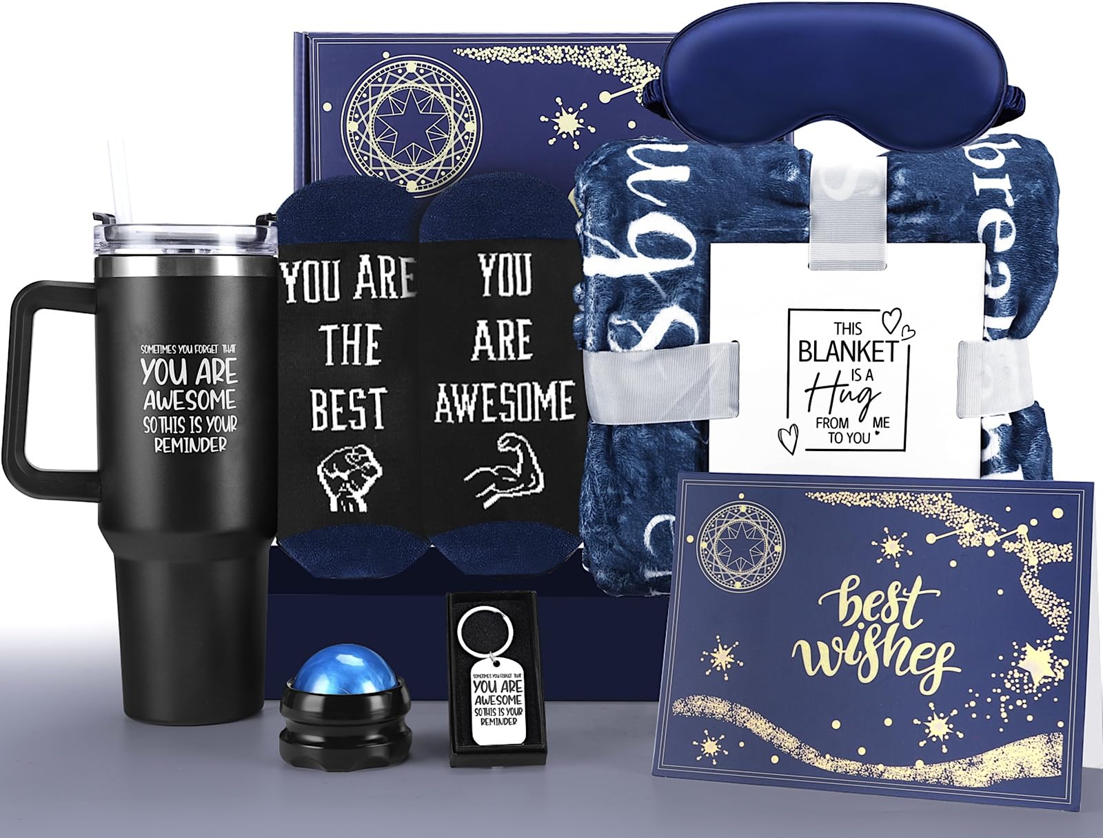 - Anniversary Gifts for Men: Show him how much he means to you with this anniversary gift set for men. Featuring premium items such as a luxury flannel blanket, 40oz insulated mug, and massage roller ball, this is the perfect gift box for husband or gift for boyfriend. Whether you're celebrating a relationship milestone or just looking for unique gifts for men, this set will create unforgettable moments