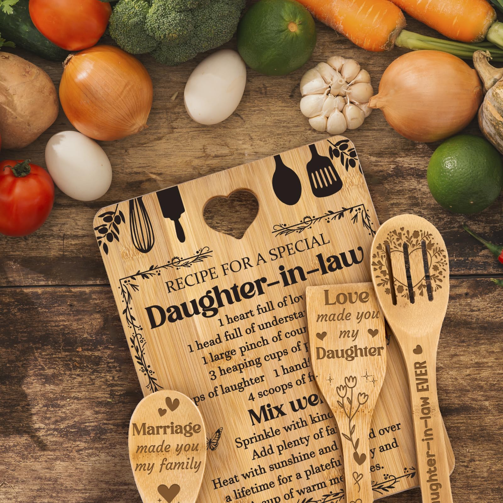 Gifts for Daughter in Law - "Recipe for a Special Daughter-in-Law" Daughter in Law Birthday Gifts Cutting Board Set, Bamboo-Made Engraved Utensil Set Gifts for Daughter in Law.