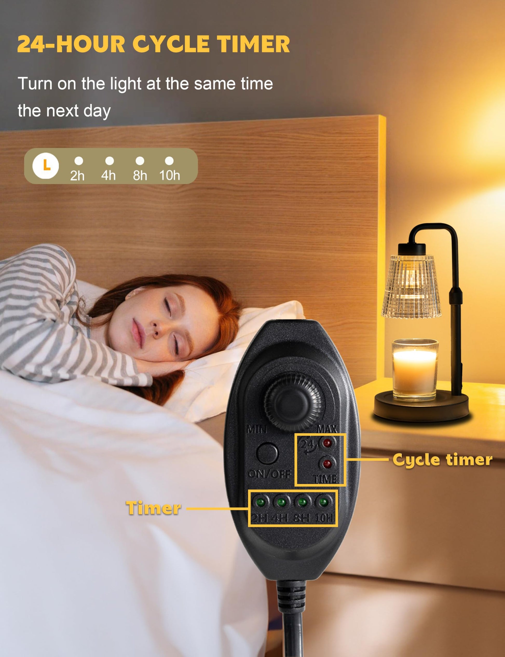 - Fully Dimmable and 12-Hour Timing Function: Enjoy complete control over the ambiance with our dimmable knob, offering unrestricted dimming for personalized melting speeds. Additionally, our Candle+Warmer+Lamp boasts a convenient timer function, ensuring a perfect atmosphere tailored to your preferences, facilitating uninterrupted sweet dreams.