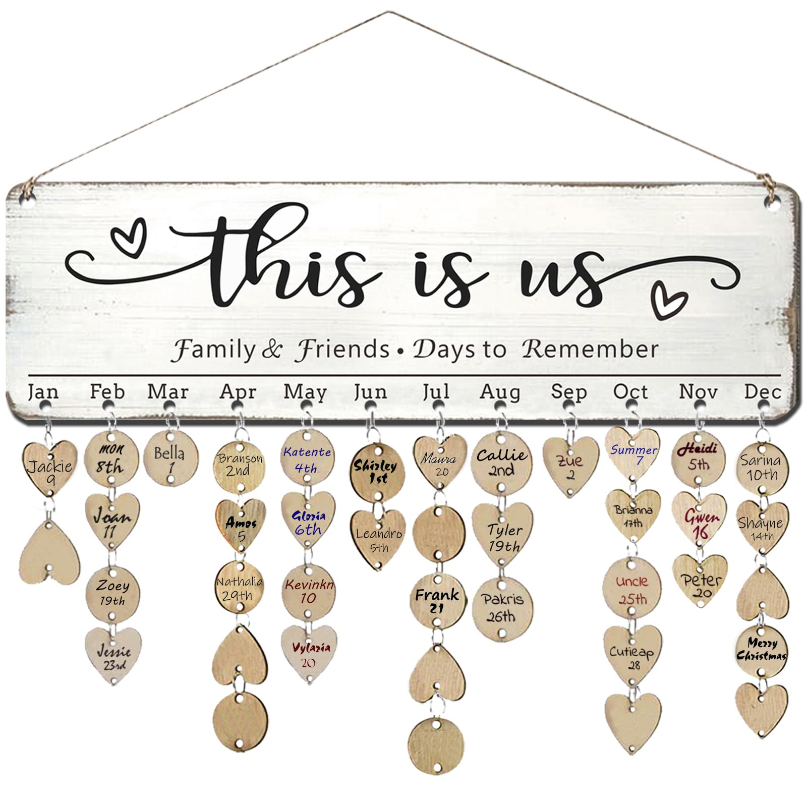 - → Never Forgot any Important Dates-Wooden Family Birthday Reminder Calendar Board to Keep track of the upcoming birthdays of family and friends with this festive wall hanging birthday calendar board, be ready with cards or gifts in time.