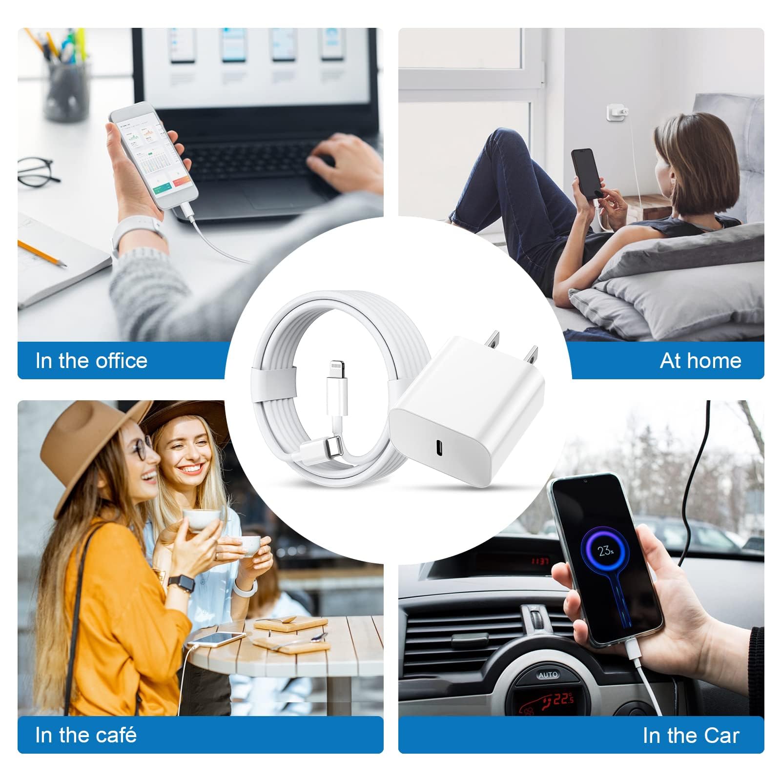 - Fast Charging: This kit includes four USB-C wall adapters and four C-to-Lightning cables, providing lightning-fast charging for your iPhone. They charge your device up to 3 times faster than iPhone's 5W charger and support Quick Charge 2.0 for many Android devices.