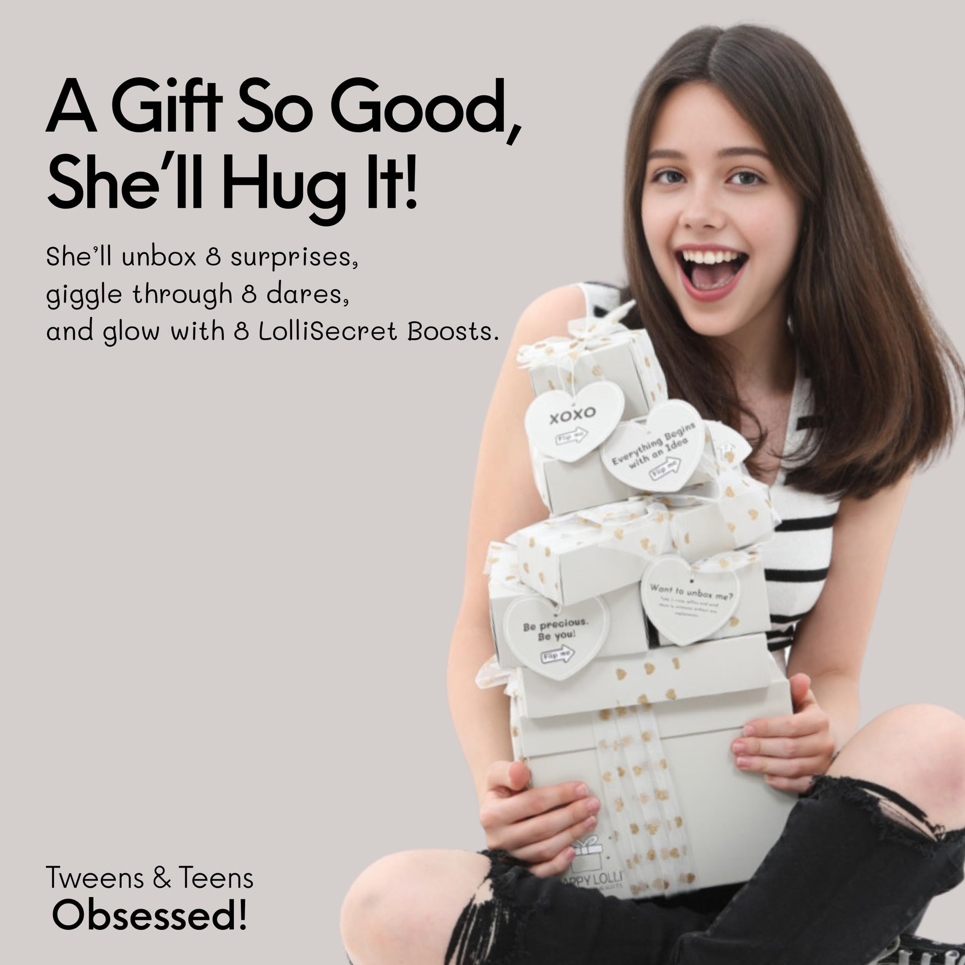 HAPPY LOLLI Birthday Gift for Tween & Teen Girls – 8 Wrapped Gifts with Empowering Tasks – Perfect for Christmas & Birthdays
