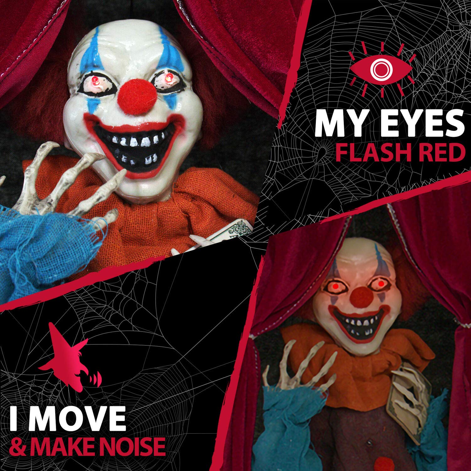 Haunted Hill Farm Talking Clown Halloween Animatronic with Flashing Red Eyes, Indoor or Outdoor Halloween Decorations, Battery Operated Creepy Halloween Props for Home or Haunted House