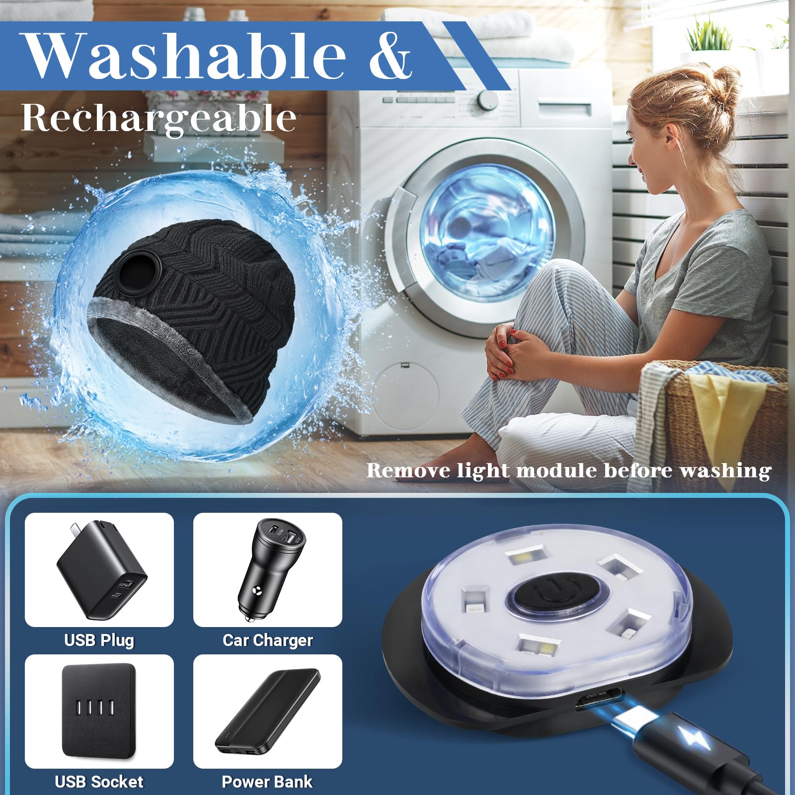 - REMOVABLE AND WASHABLE - HIGHEVER rechargeable hat light is easy to remove and the hat is washable. Simply take out the light and wash it by hand or washing machine. HIGHEVER beanie hats with lights are ideal for plumbers, electricians, builders, runners, mechanic, walkers. If you have any questions or problems with the headlamp beanie, please feel free to contact us and we will respond in 12 hours, we would solve problems until you are satisfied.