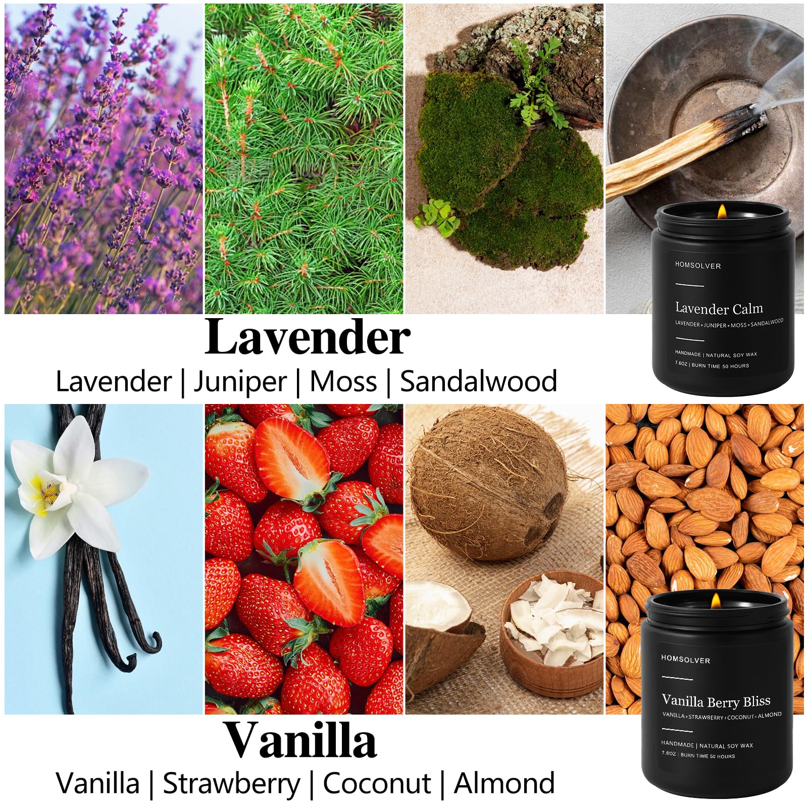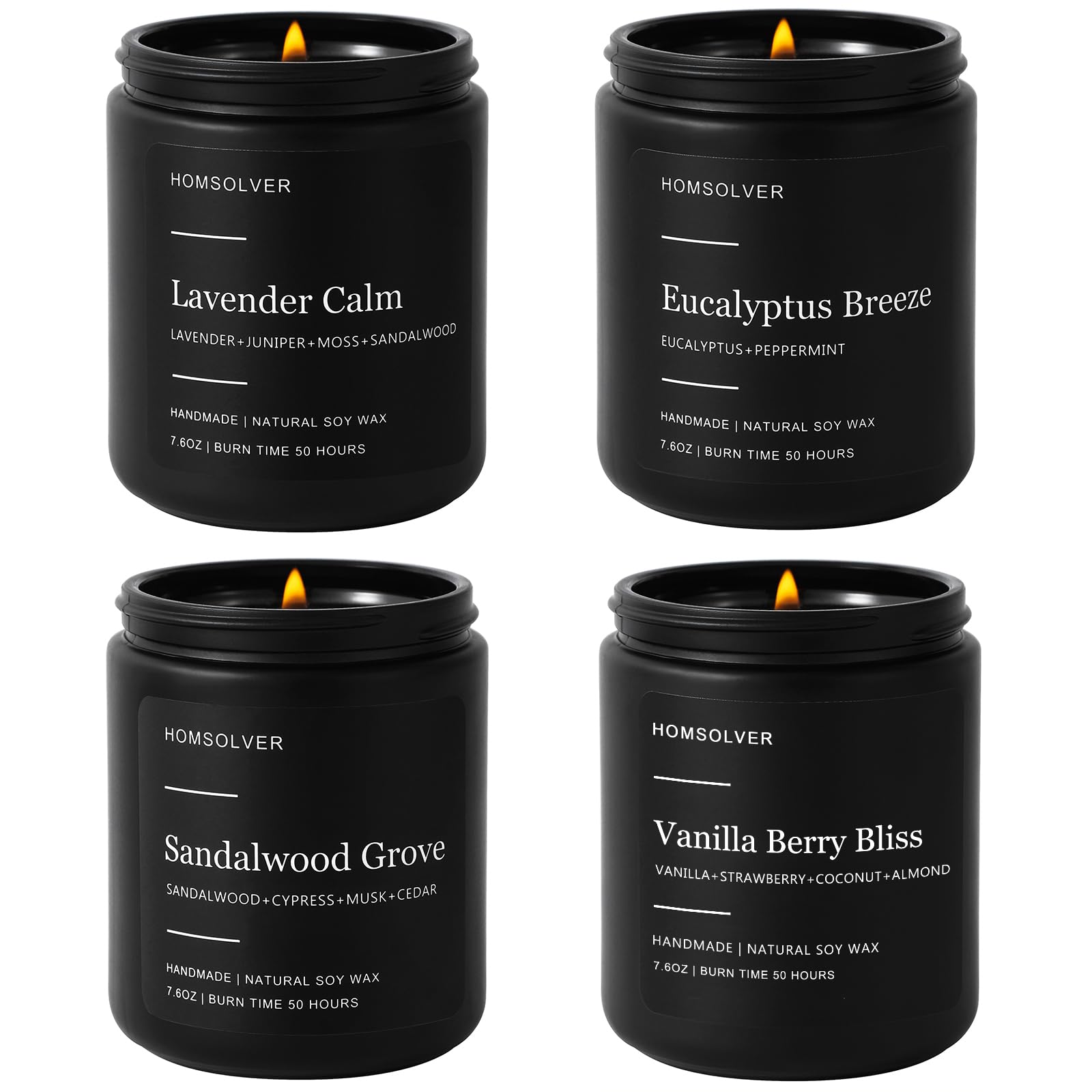 Homsolver Set of 4 Scented Candles for Home Decor, Candle Gifts for Dad Men Him, 200Hours Burn Tine, Vanilla, Lavender, Sandalwood, Eucalyptus Scented with Black Jar