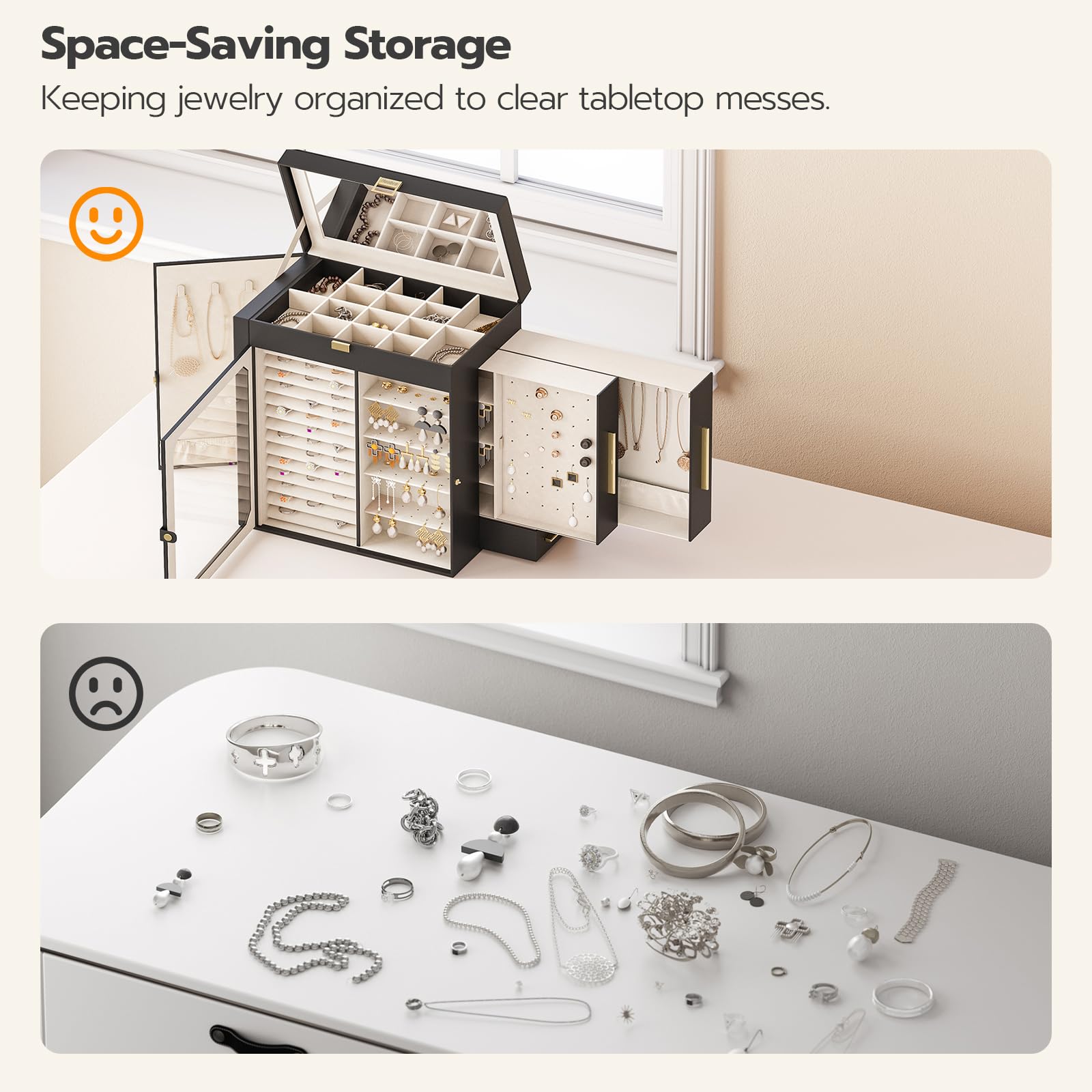 - Built-In Large Mirror: This is a large jewelry box built in a practical mirror, which helps you easily put on jewelry and check how you look when you dress up in the morning, saving your precious morning time and making a good start before going out