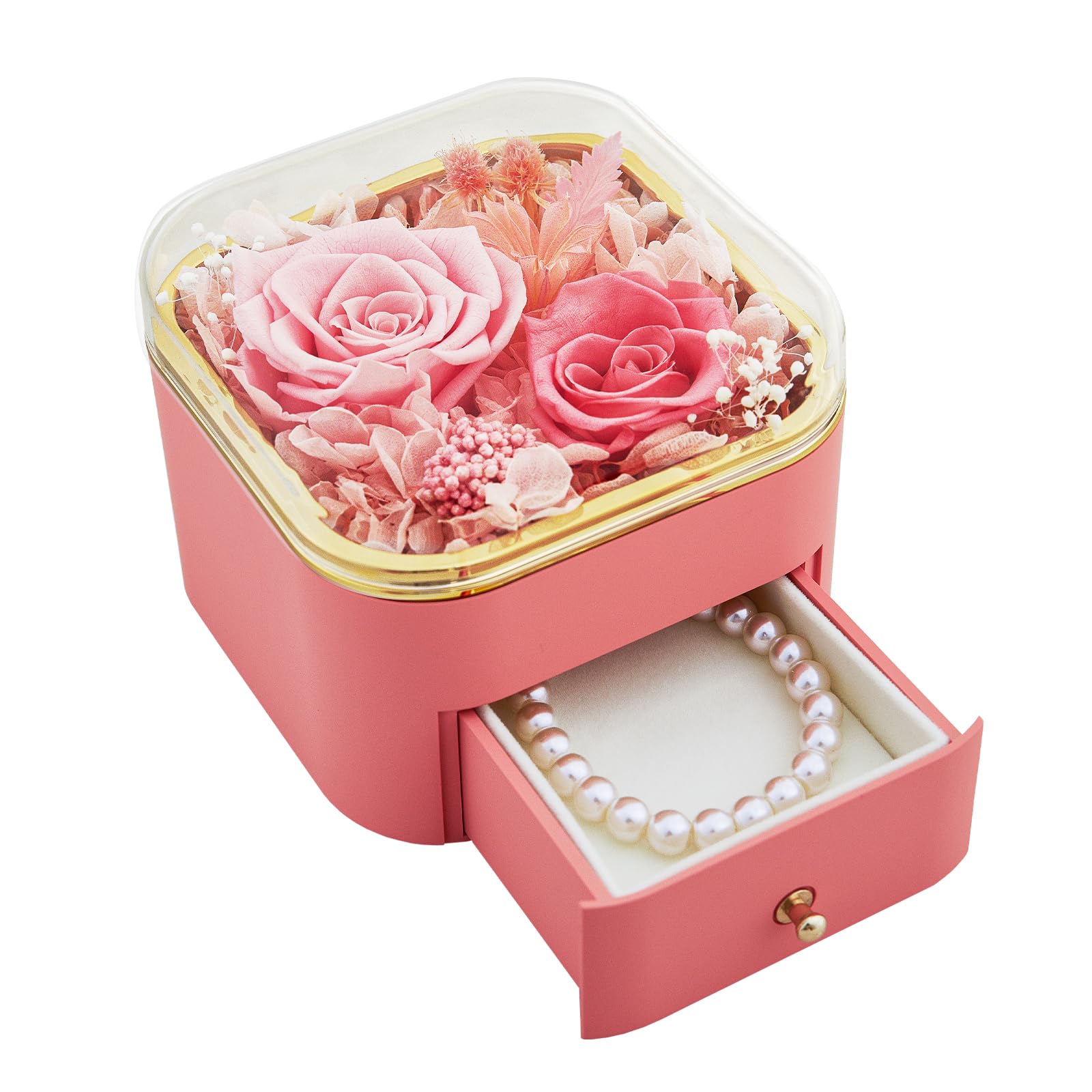 INYPTROPIC Preserved Real Rose with Pearl Bracelets Forever Flowers Jewelry Box for Mom Wife Girlfriend Grandma on Mothers Day Birthday Valentines Christmas Anniversary Beatiful Gifts for Women