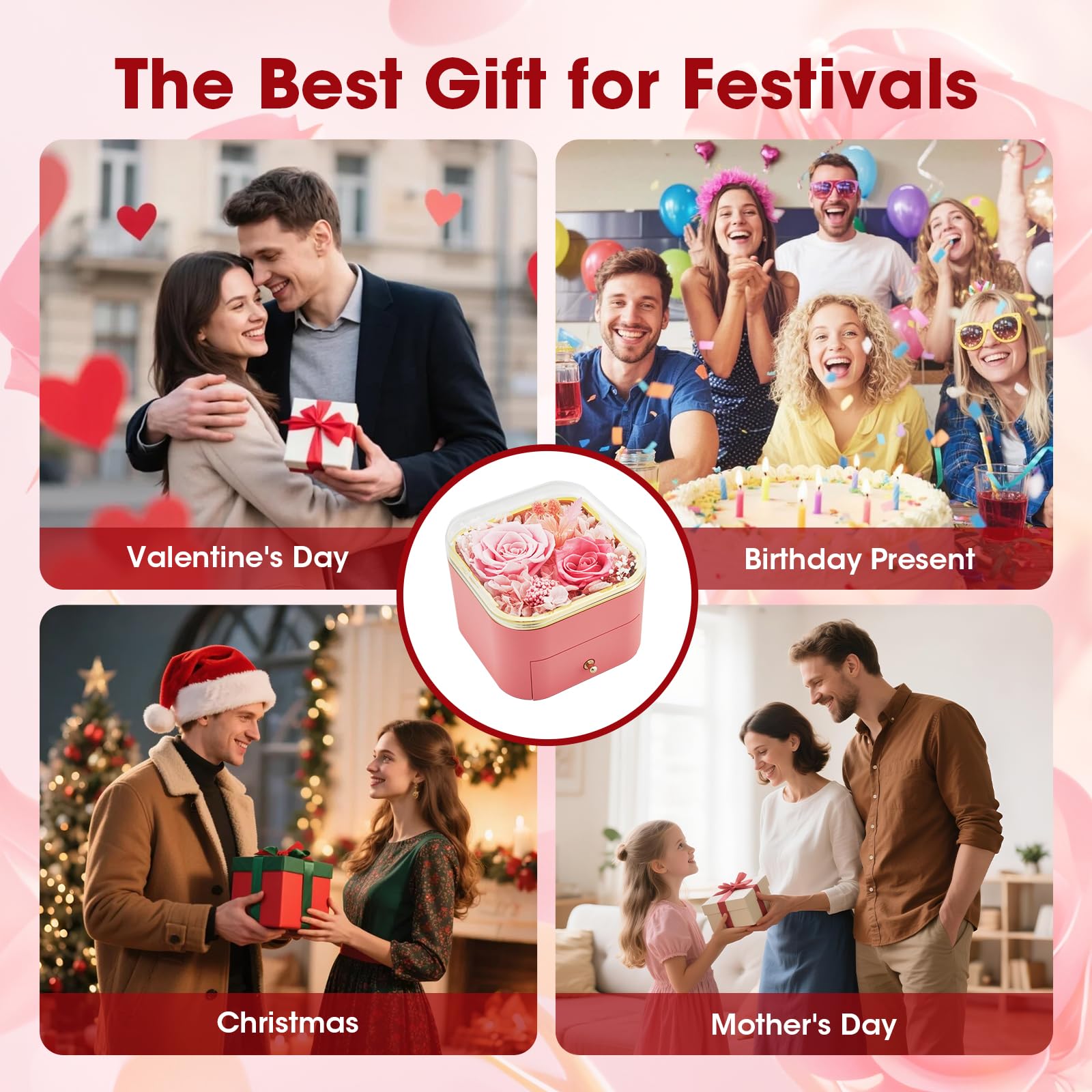 - š¹ćGifts For Women Birthday Uniqueć Mother's Day Gift Flower Gift for Mom,She comes in her own wrapped gift box so you can just give it away without having to spend time on wrapping. The product gift box includes: 2 pickled eternity rose + 1 gift box + 1 Pearl Bracelets+ 1 greeting card. Besides, it is a good choice to use it as a decoration for living room, bedroom, bookshelf and table or dressing table, especially at night, turn on the light, the sense of atmosphere is directly pulled full.