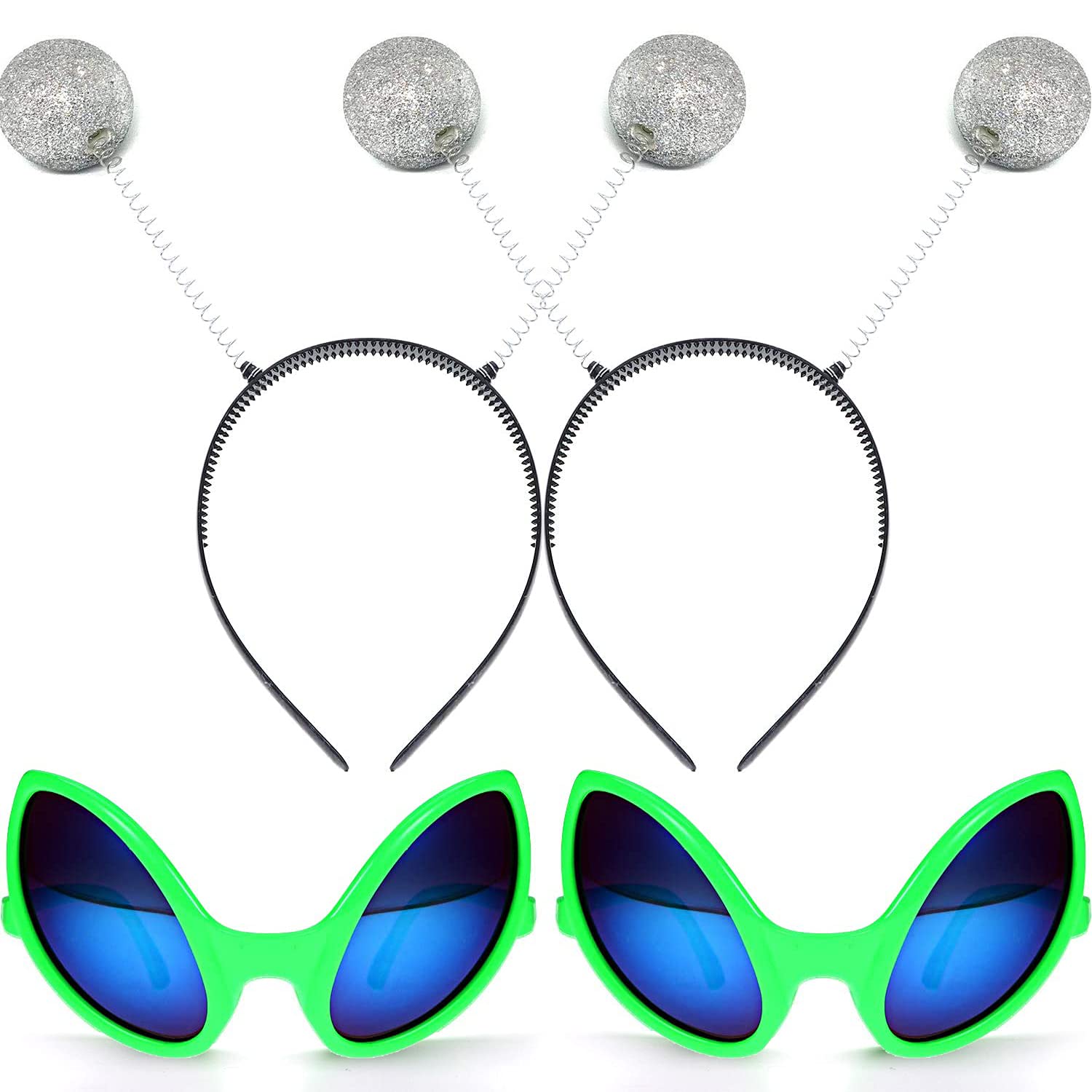 itechpanda 4 Pairs Green Plastic Alien Glasses, 4 Pieces Martian Antenna Headband Boppers Sunglasses Headbands for Fancy Dress Party Halloween Decoration Kids and Adults