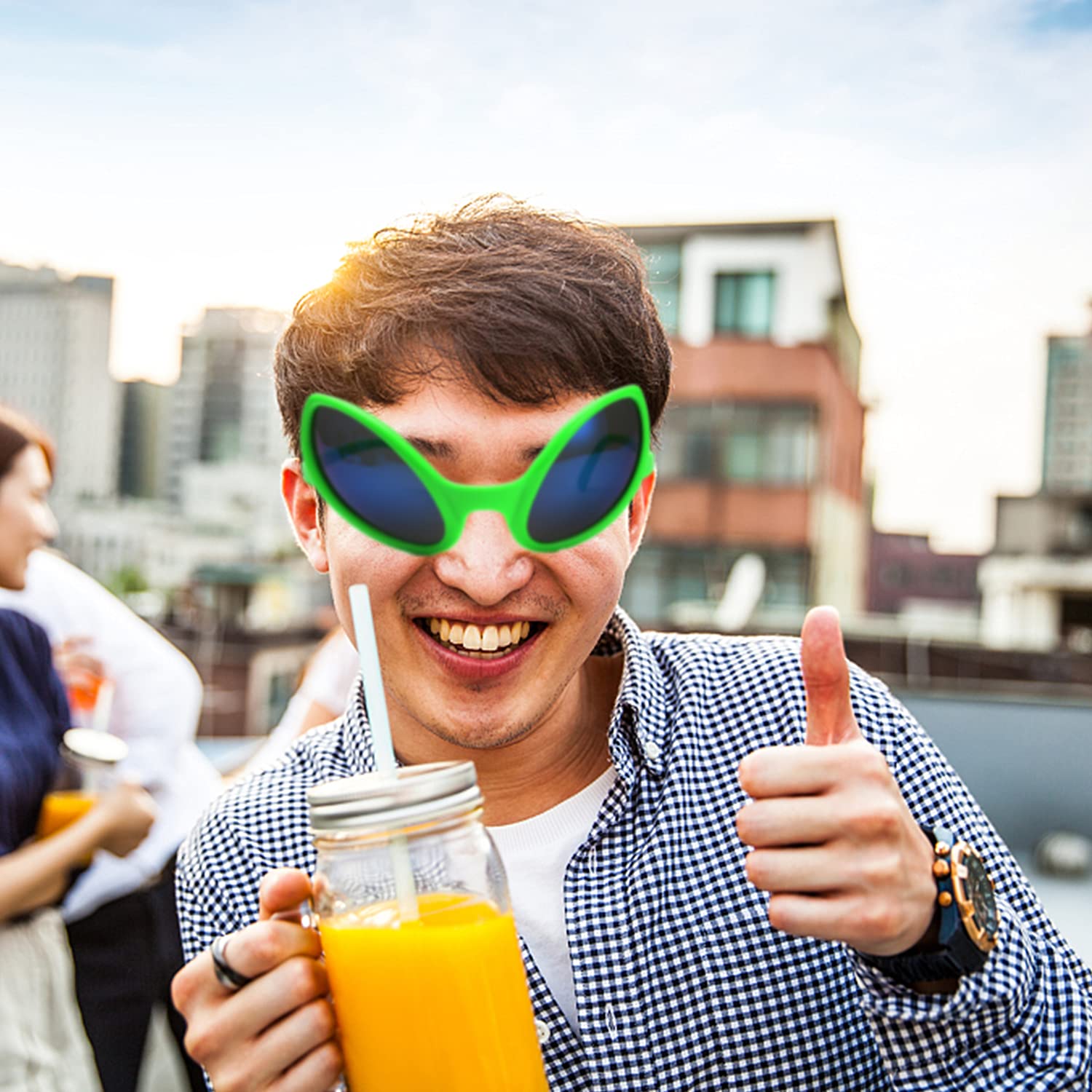 - 【Alien Glasses】: The alien glasses are made of plastic and resin, lightweight but durable, funny alien design makes you eye-catching in the party; Size: lens size is 3.6', nose tip is 0.6', the glasses legs is 5.7'; one size fits most kids and adults.
