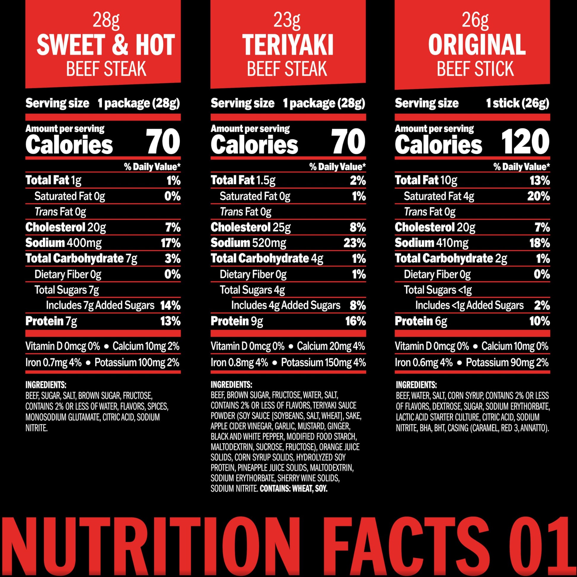 - FULL ON FLAVOR: Jack Link's beef jerky, steaks, and meat sticks are crafted with a signature blend of herbs and spices, slow-cooked over hardwood smoke for a classic taste and easy-to-chew texture that's full of flavor