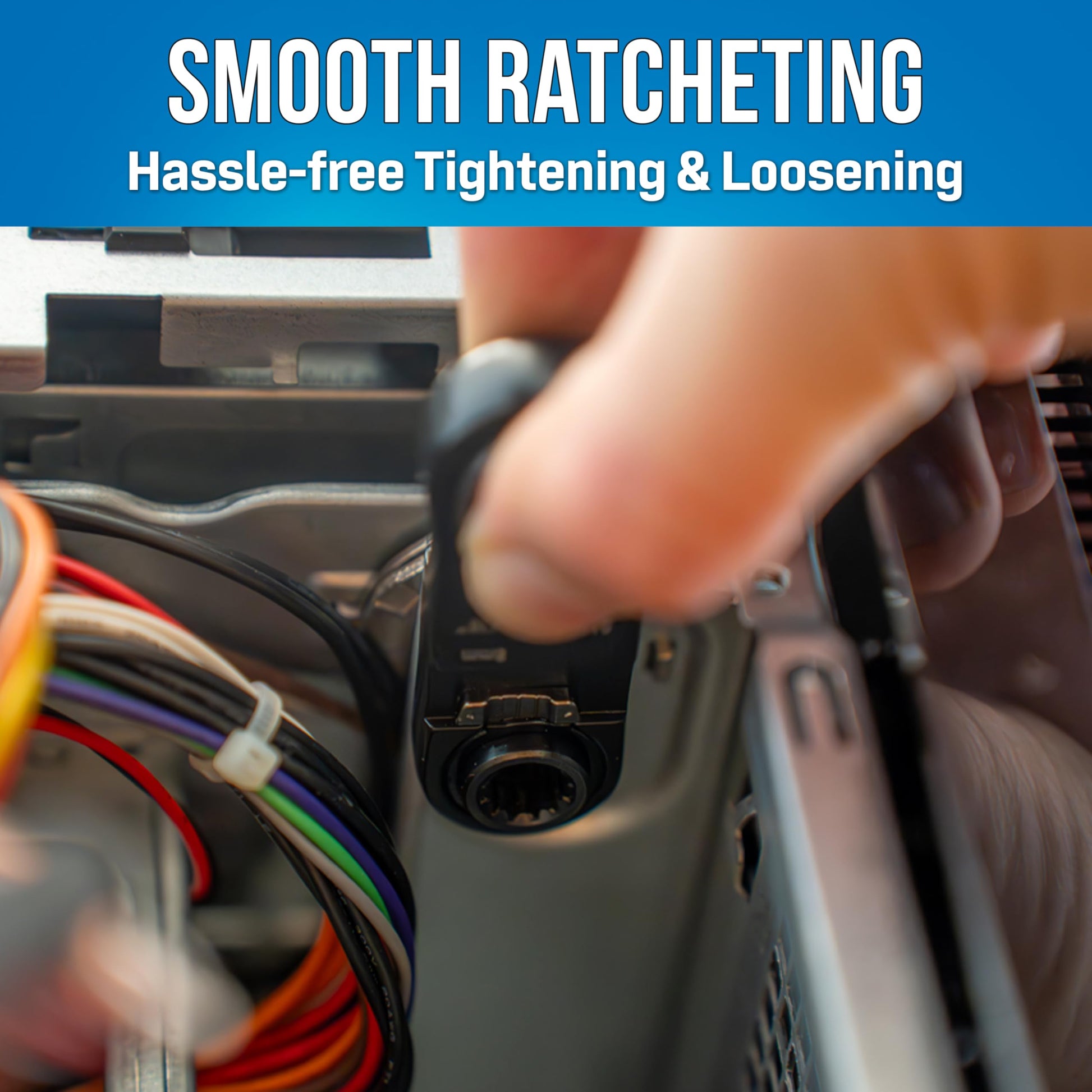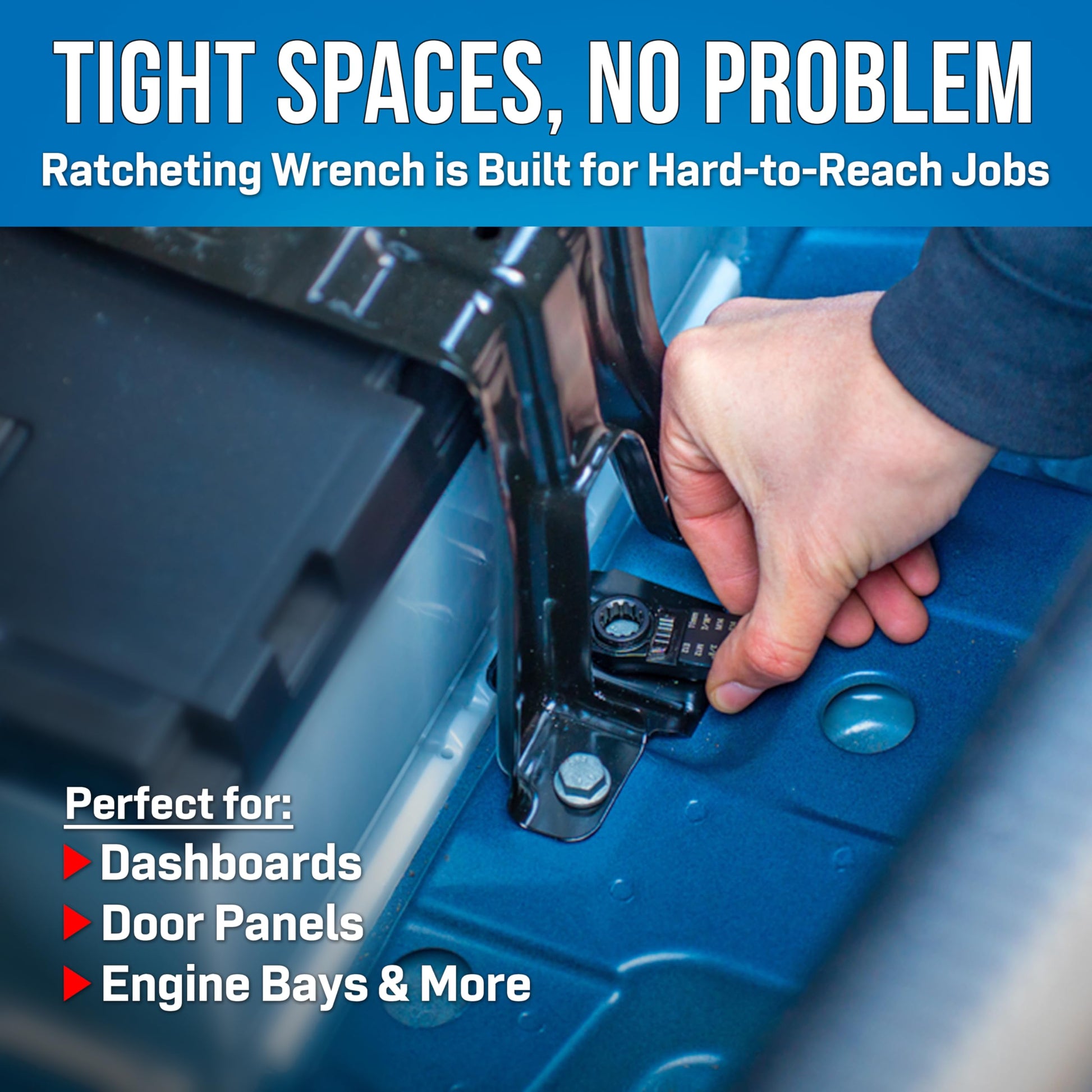 - EFFICIENT RATCHETING ACTION: Smooth ratcheting motion allows for quick and easy tightening or loosening of nuts and bolts.